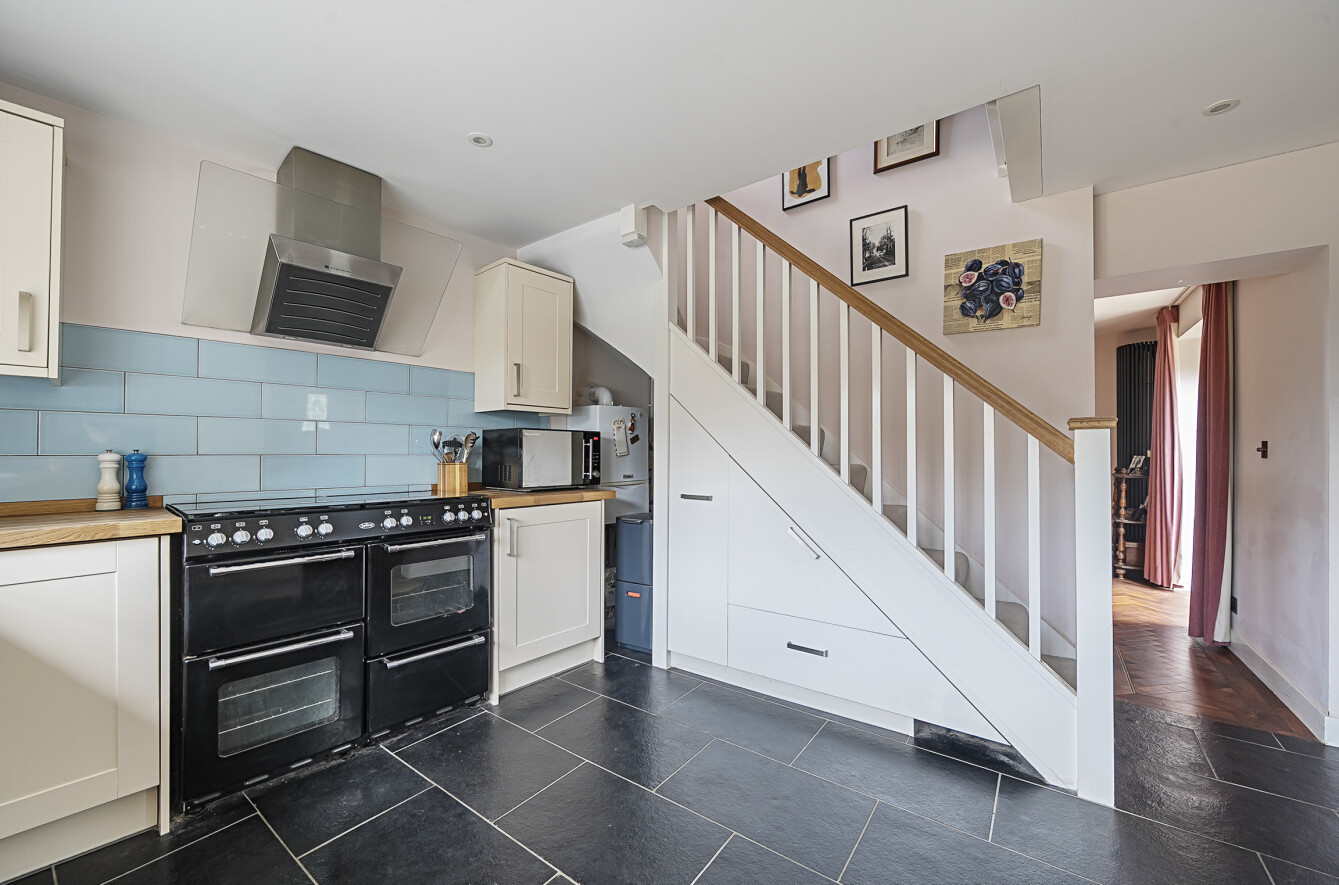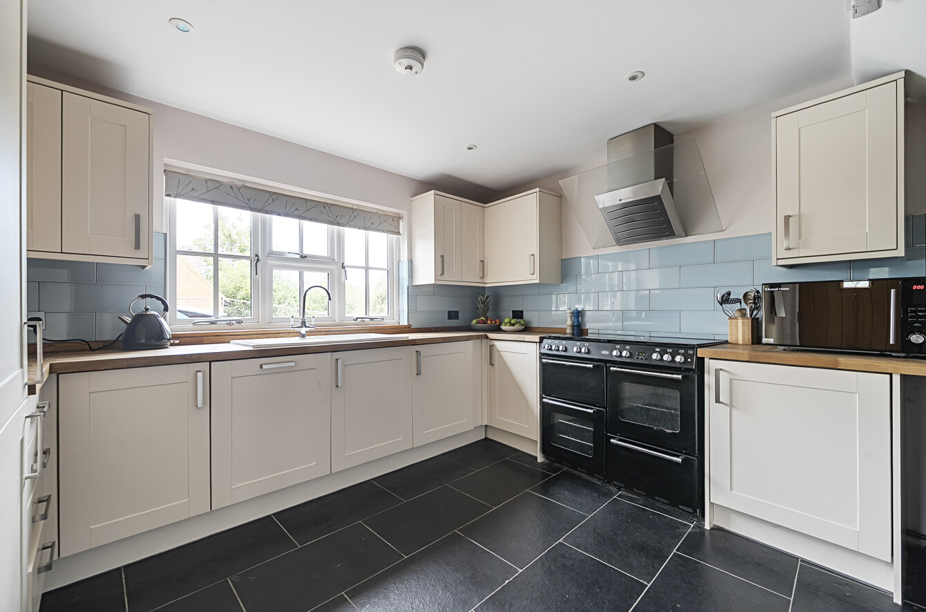 - Stylish shaker-style kitchen with range cooker and slate flooring