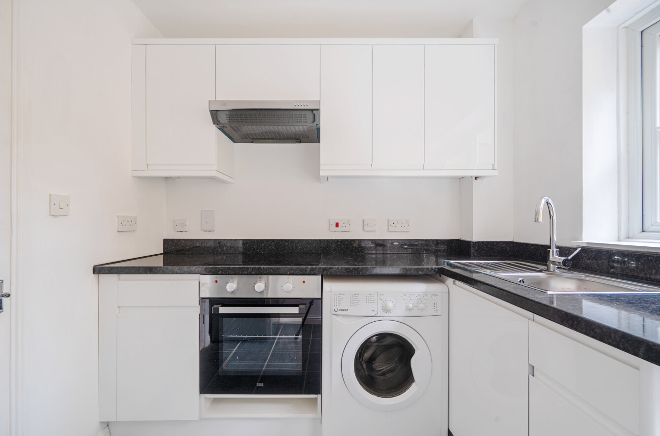 - Modern fitted kitchen with integrated oven, hob and extractor