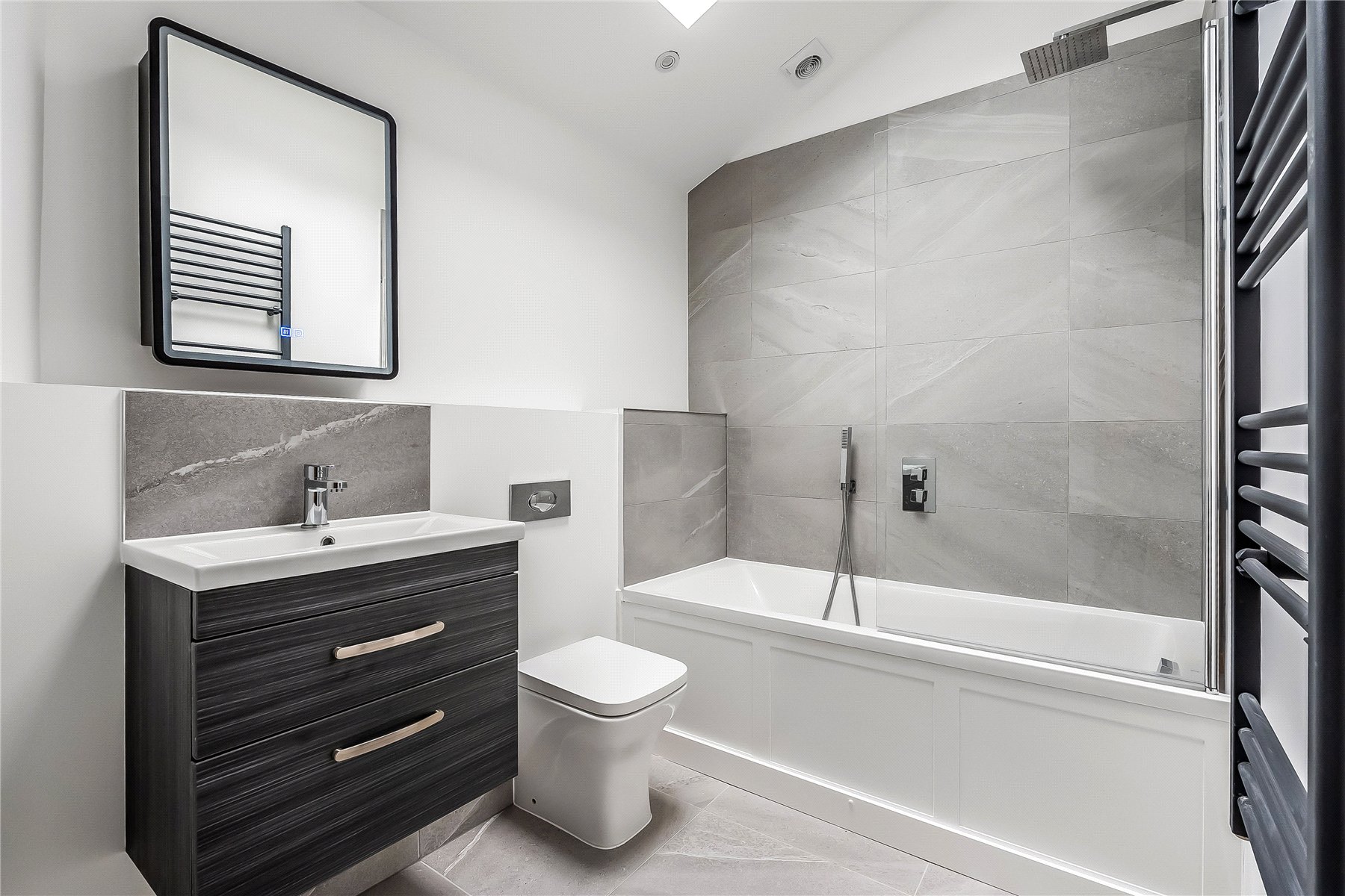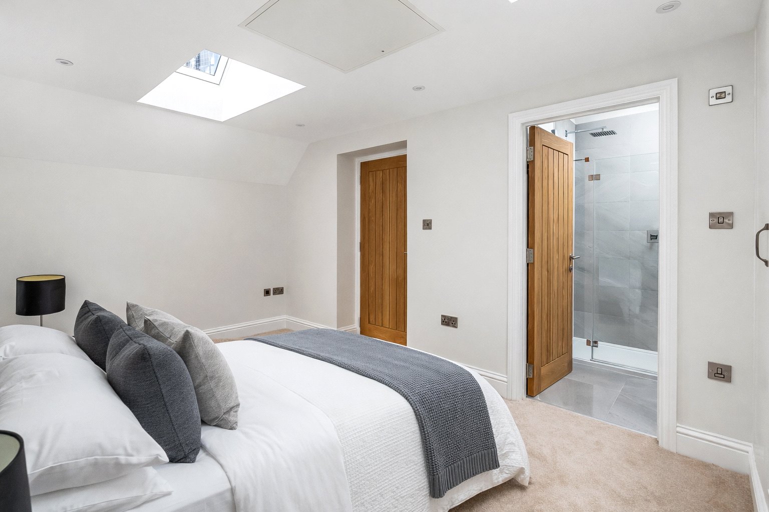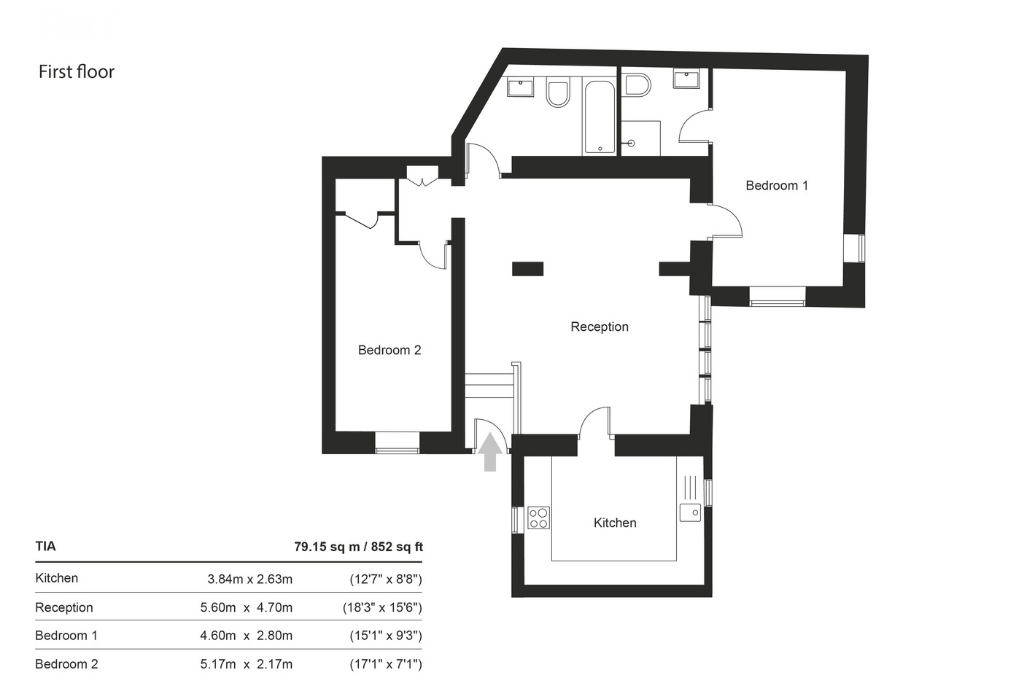 Both bedrooms are well-proportioned doubles. The principal bedroom benefits from its own en-suite bathroom, while a second stylish family bathroom serves the remainder of the apartment, offering flexibility for guests, sharers or visiting family.