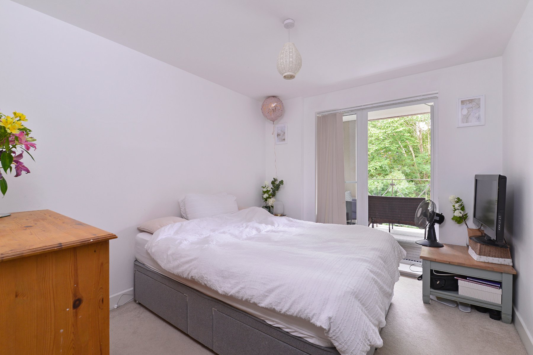 - Glazed doors opening onto the balcony from each of the bedrooms and kitchen/living room