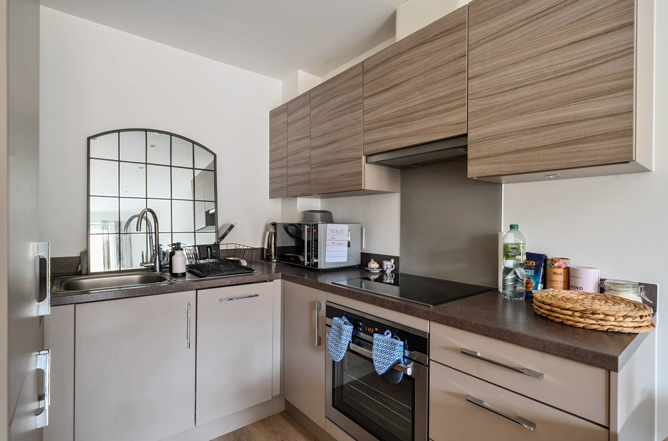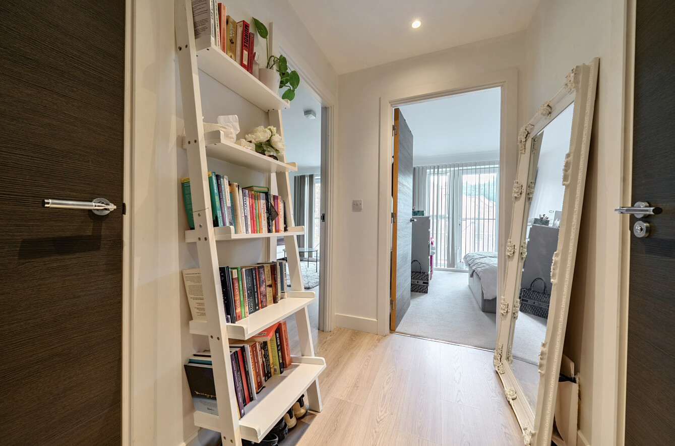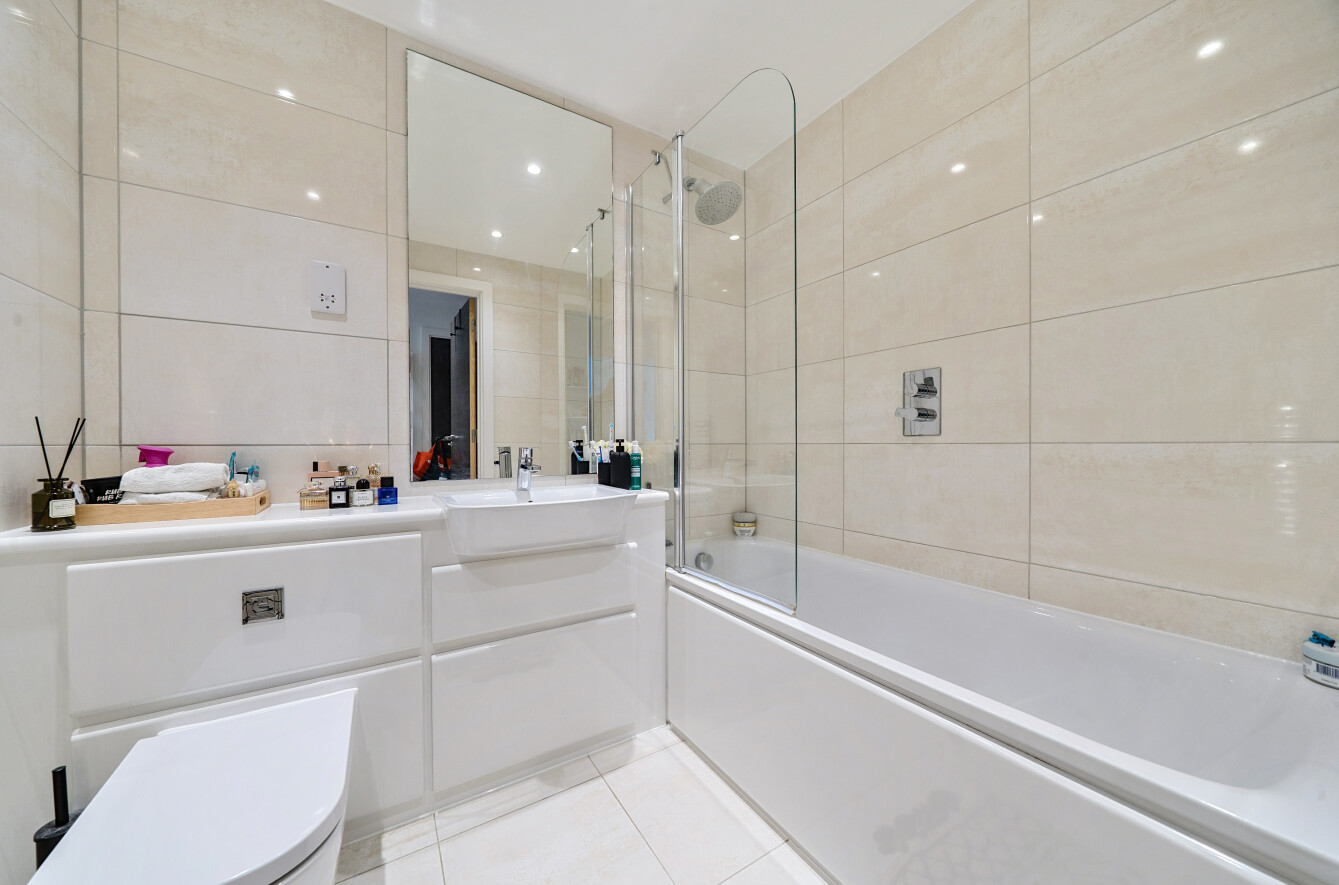 - Sleek modern bathroom with fitted storage and rainfall shower