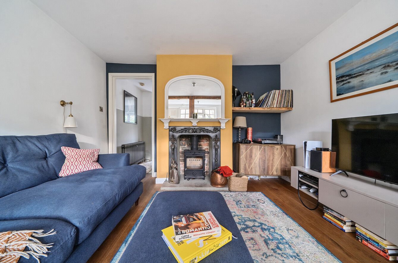 - Generous sitting room with original cast iron fireplace