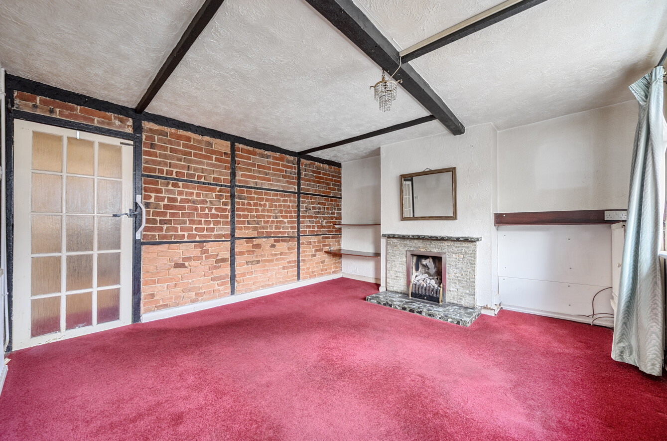 - Generous living room with fireplace and exposed beams