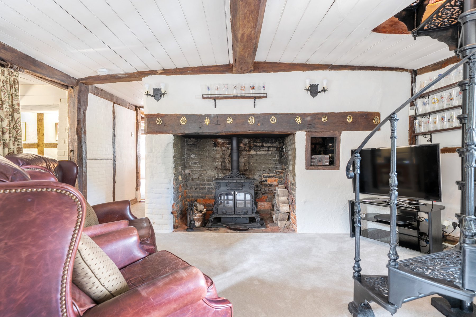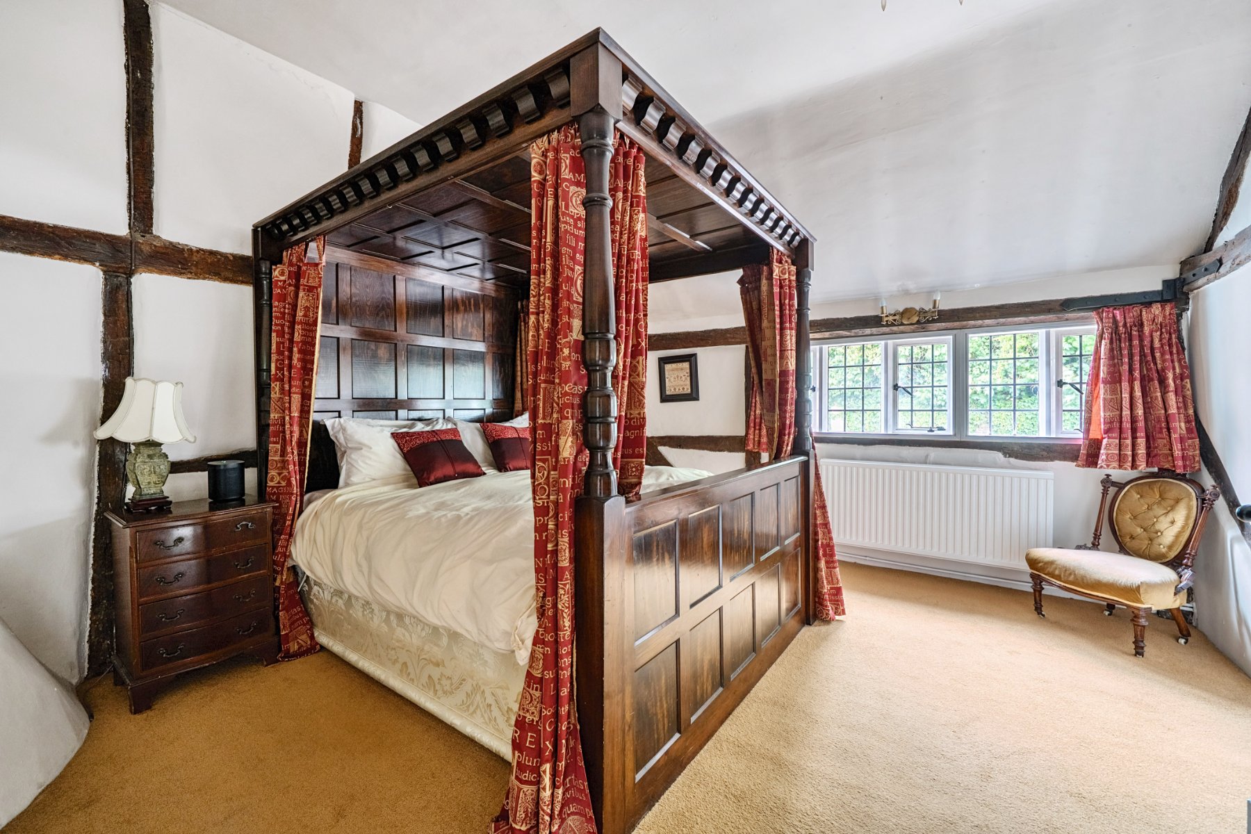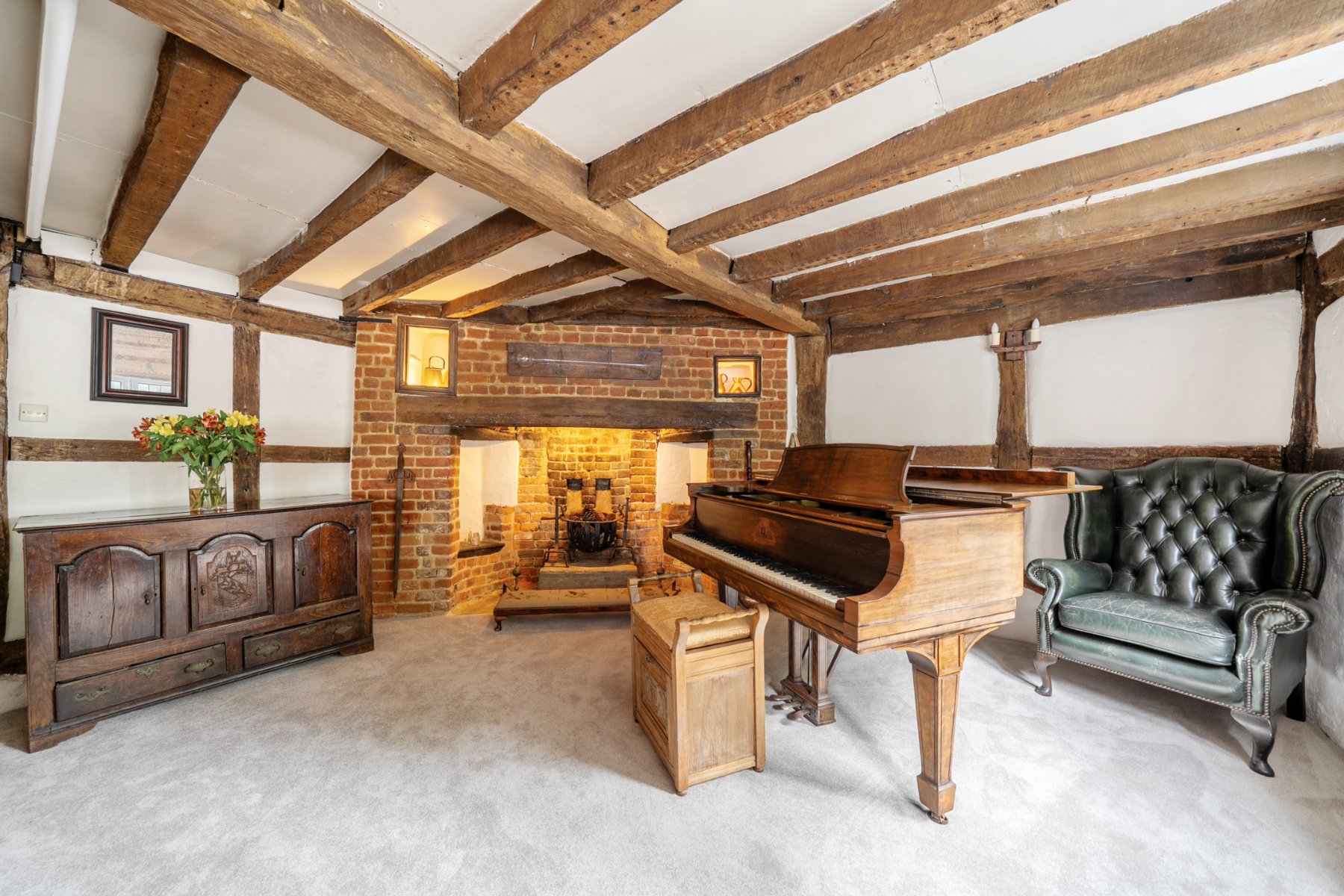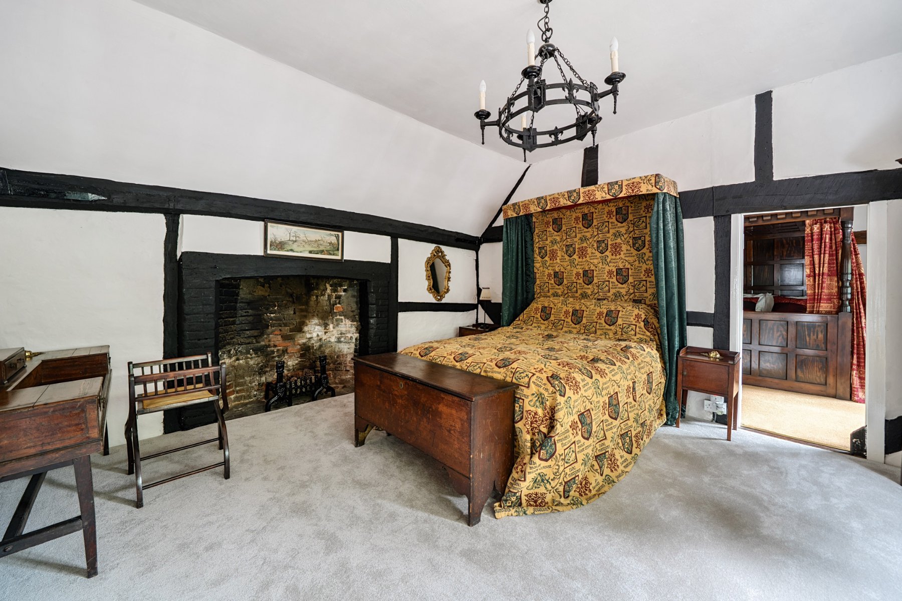 - Timber framed walls, exposed beams, inglenook fireplaces and a secret door