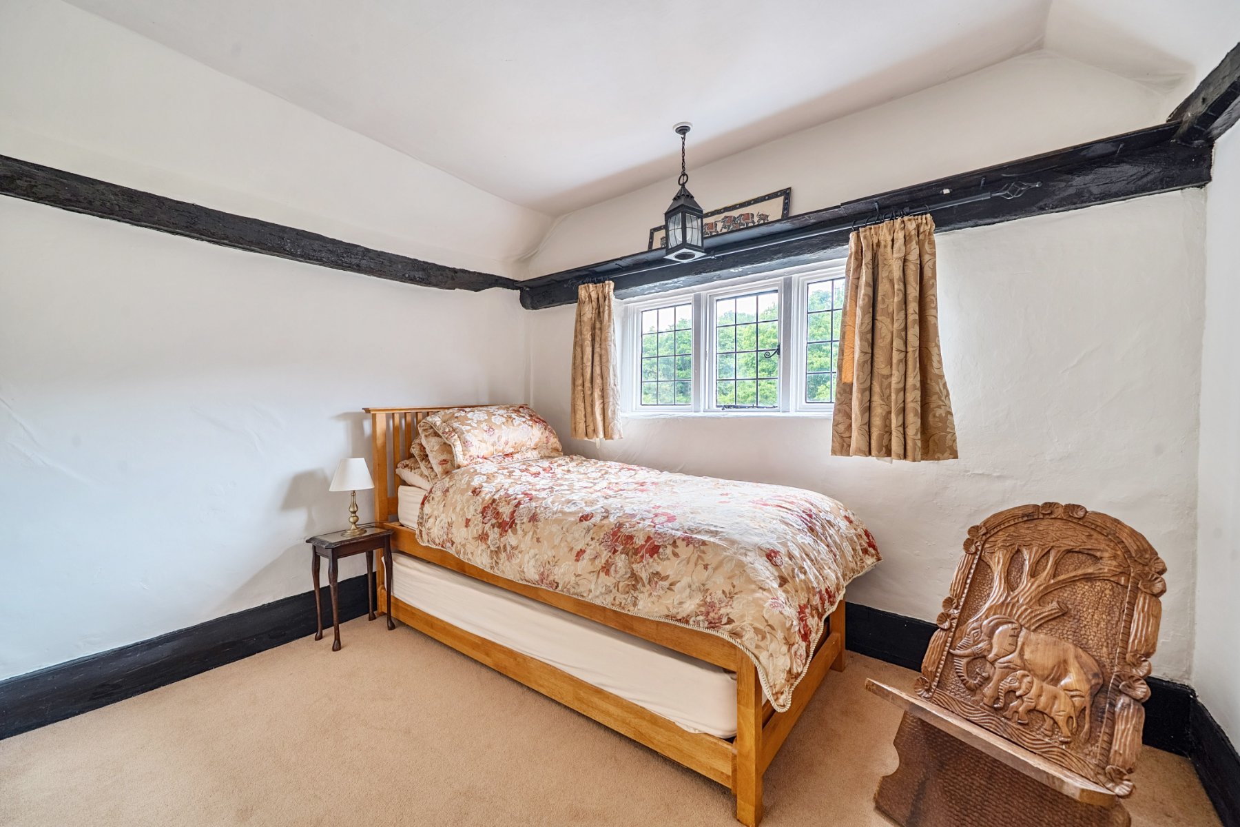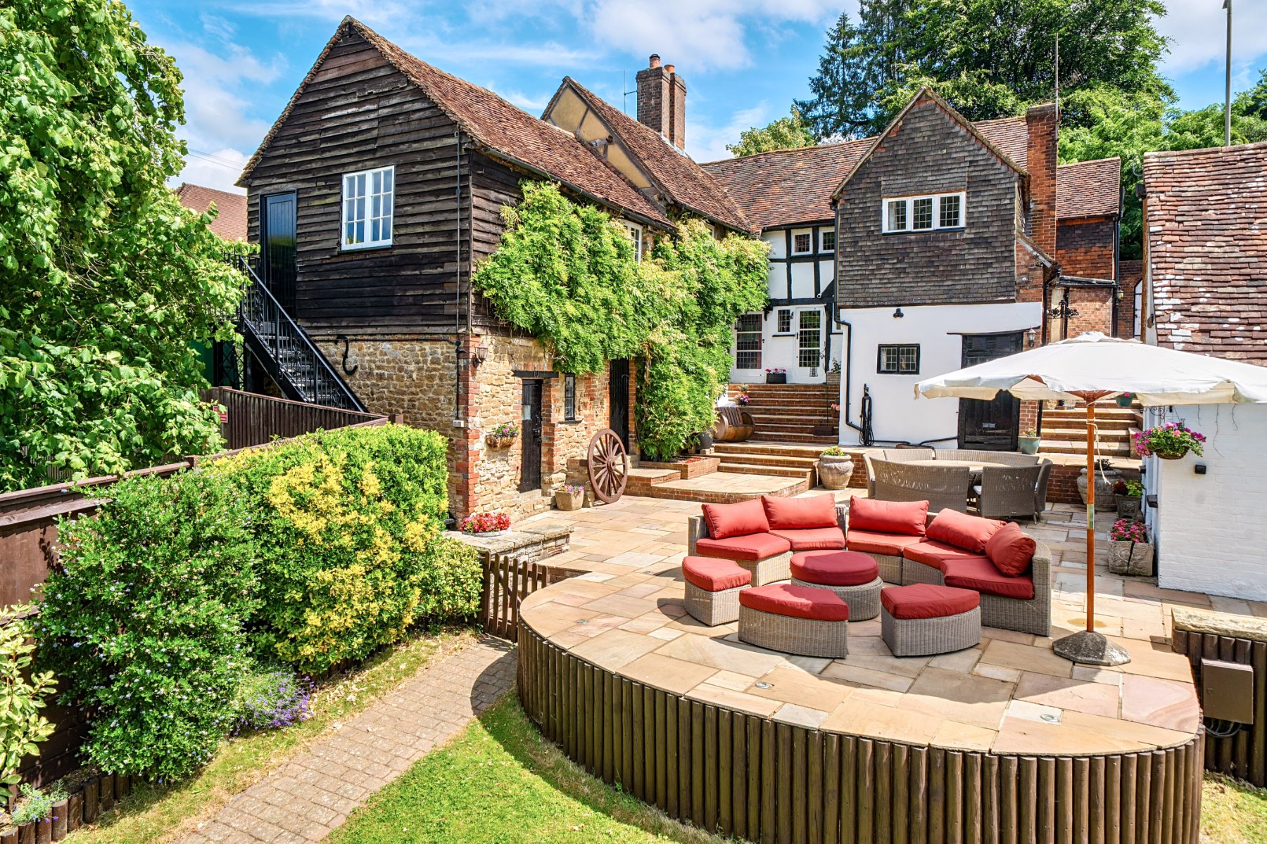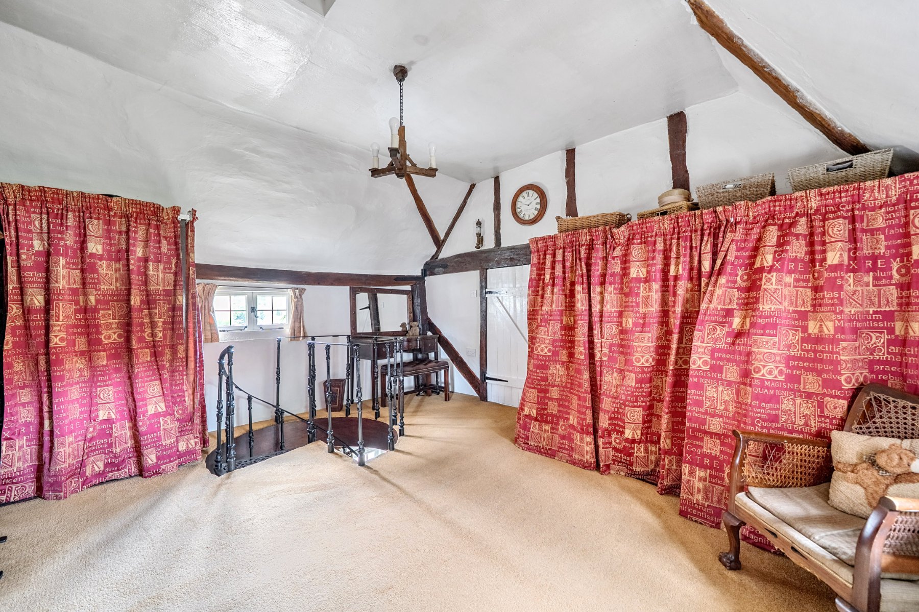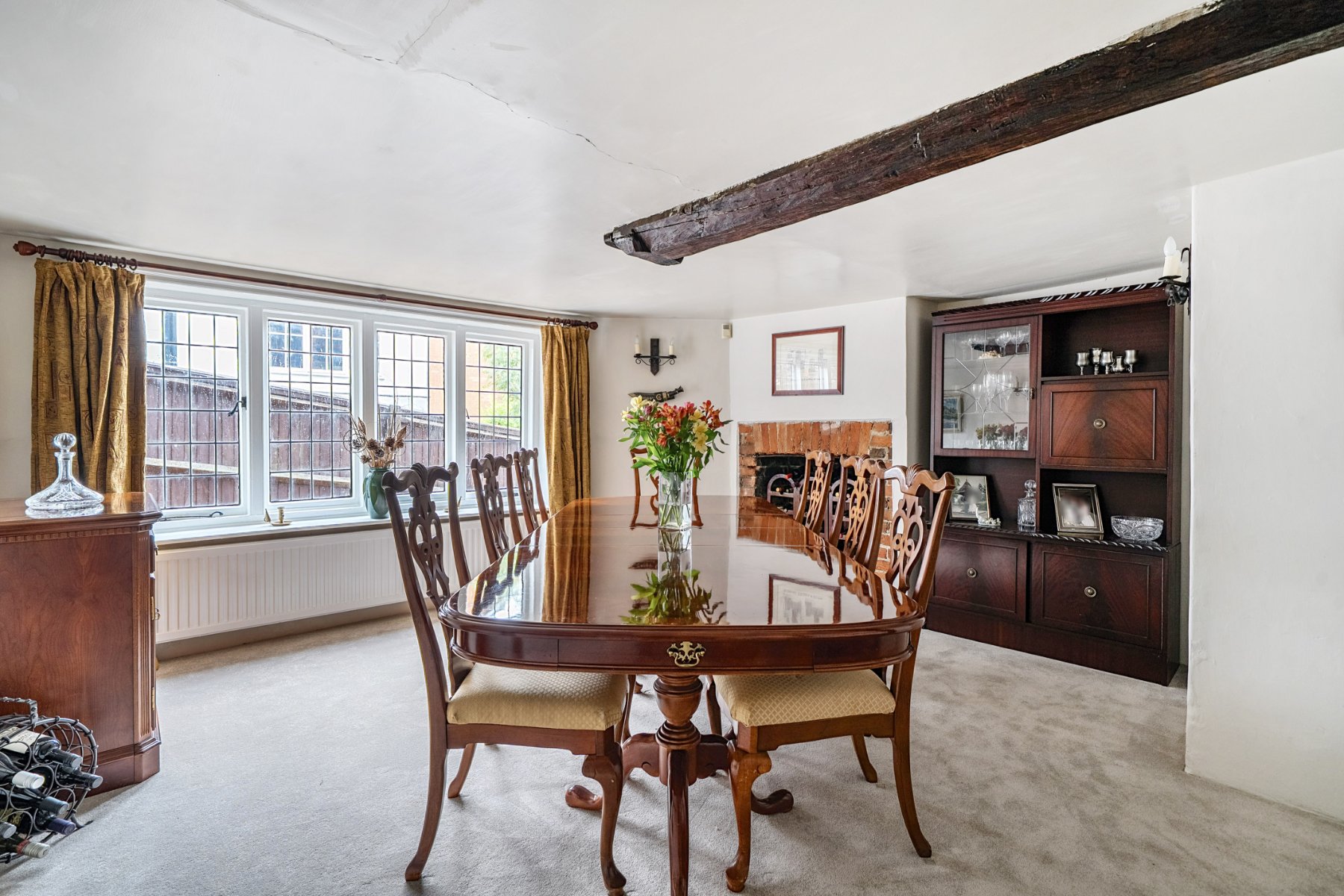 - Timber framed walls, exposed beams, inglenook fireplaces and a secret door