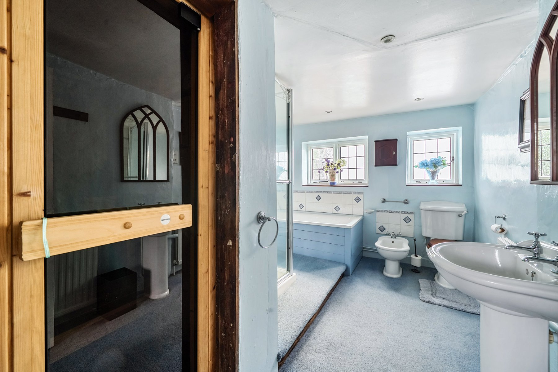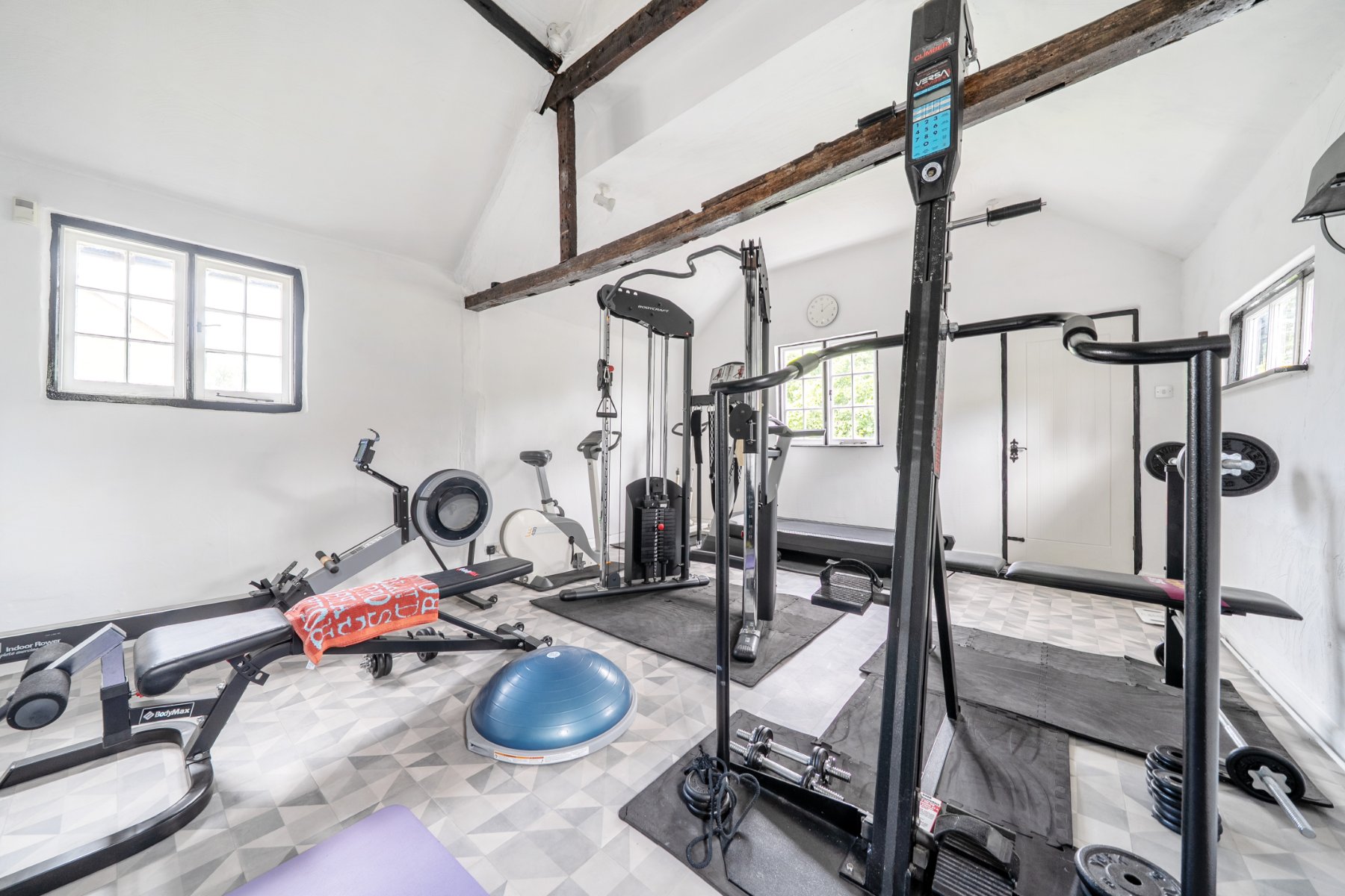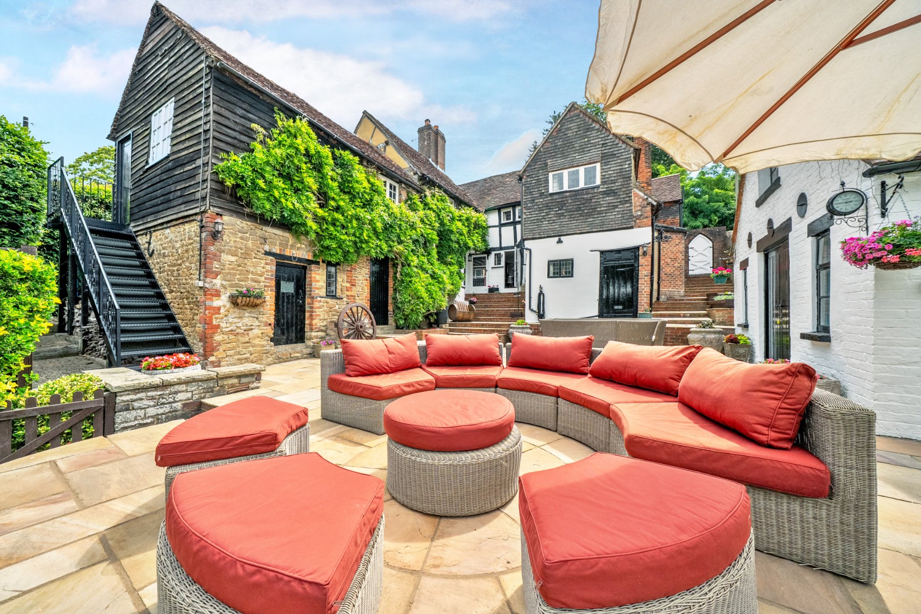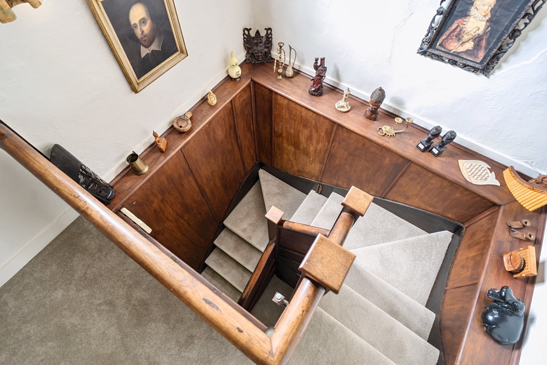 - Timber framed walls, exposed beams, inglenook fireplaces and a secret door