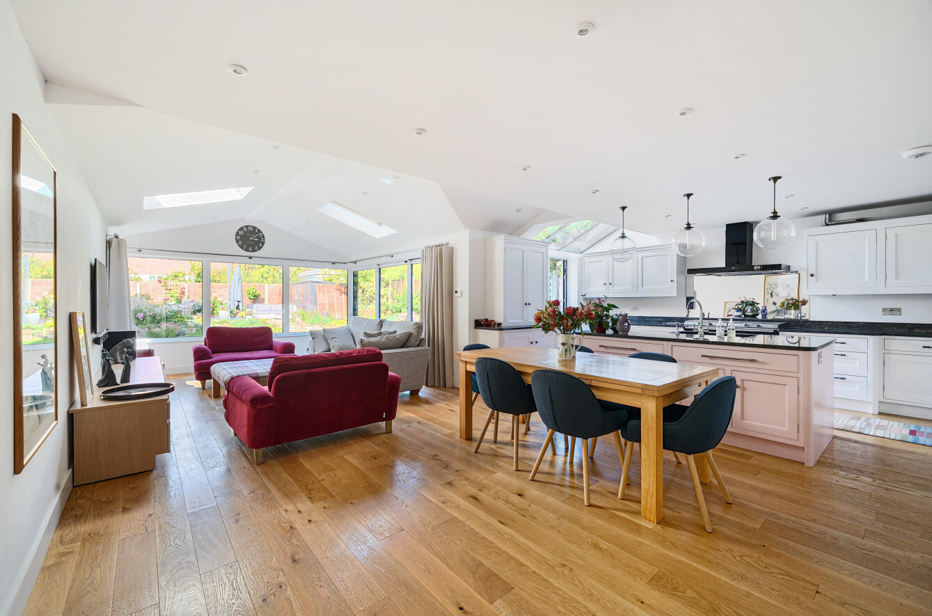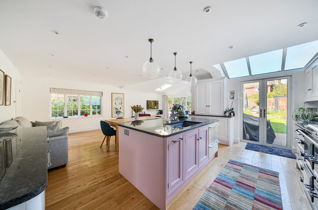 - Superb open plan kitchen/dining/family room with garden access
