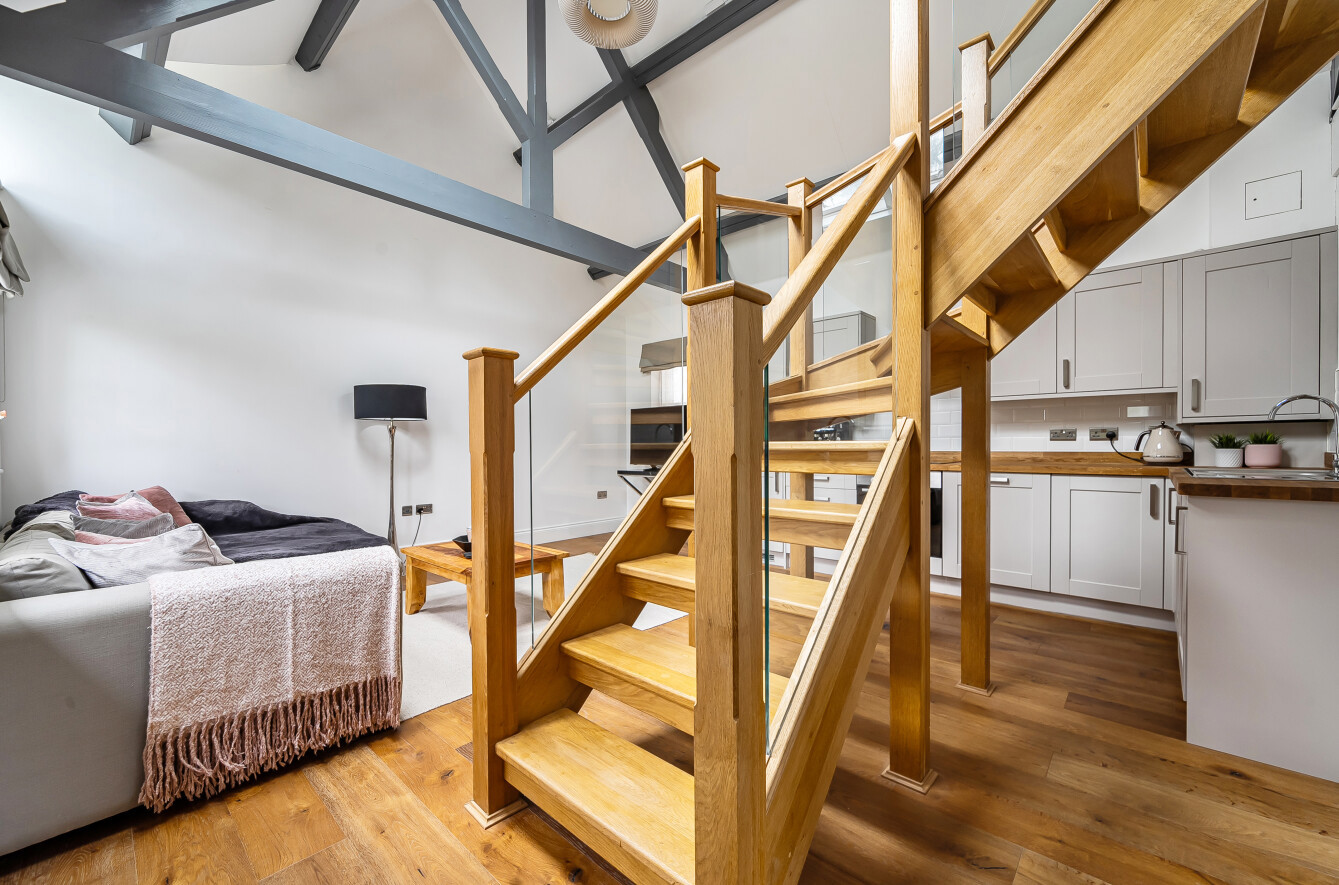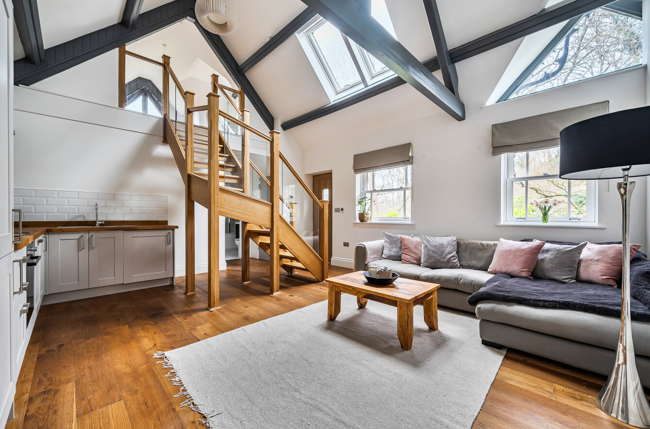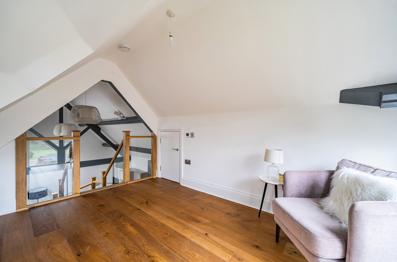 - Striking vaulted upper level with exposed detailing