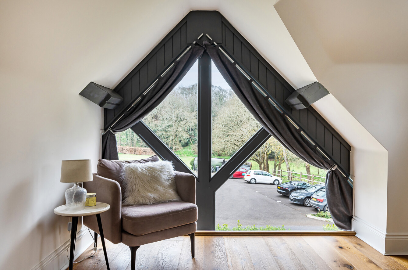 - Feature triangular window with attractive outlook