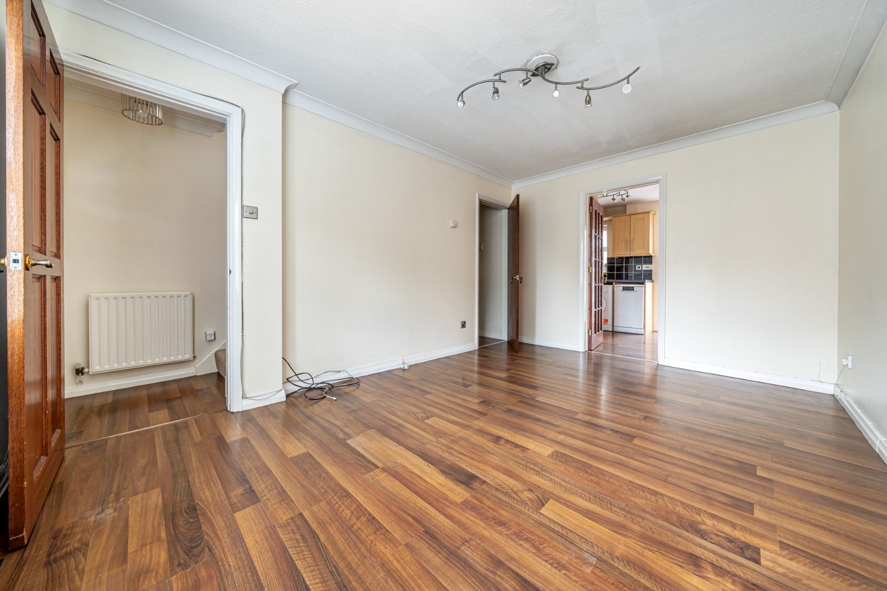 - Soft neutral colour scheme and richly toned wood effect floors