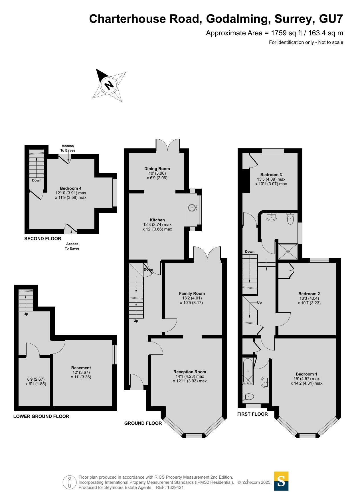 - Approx. 1,759 sq ft across four floors plus basement