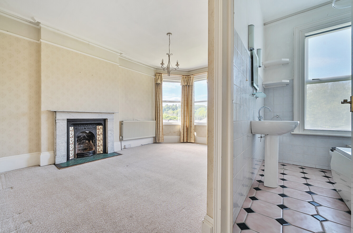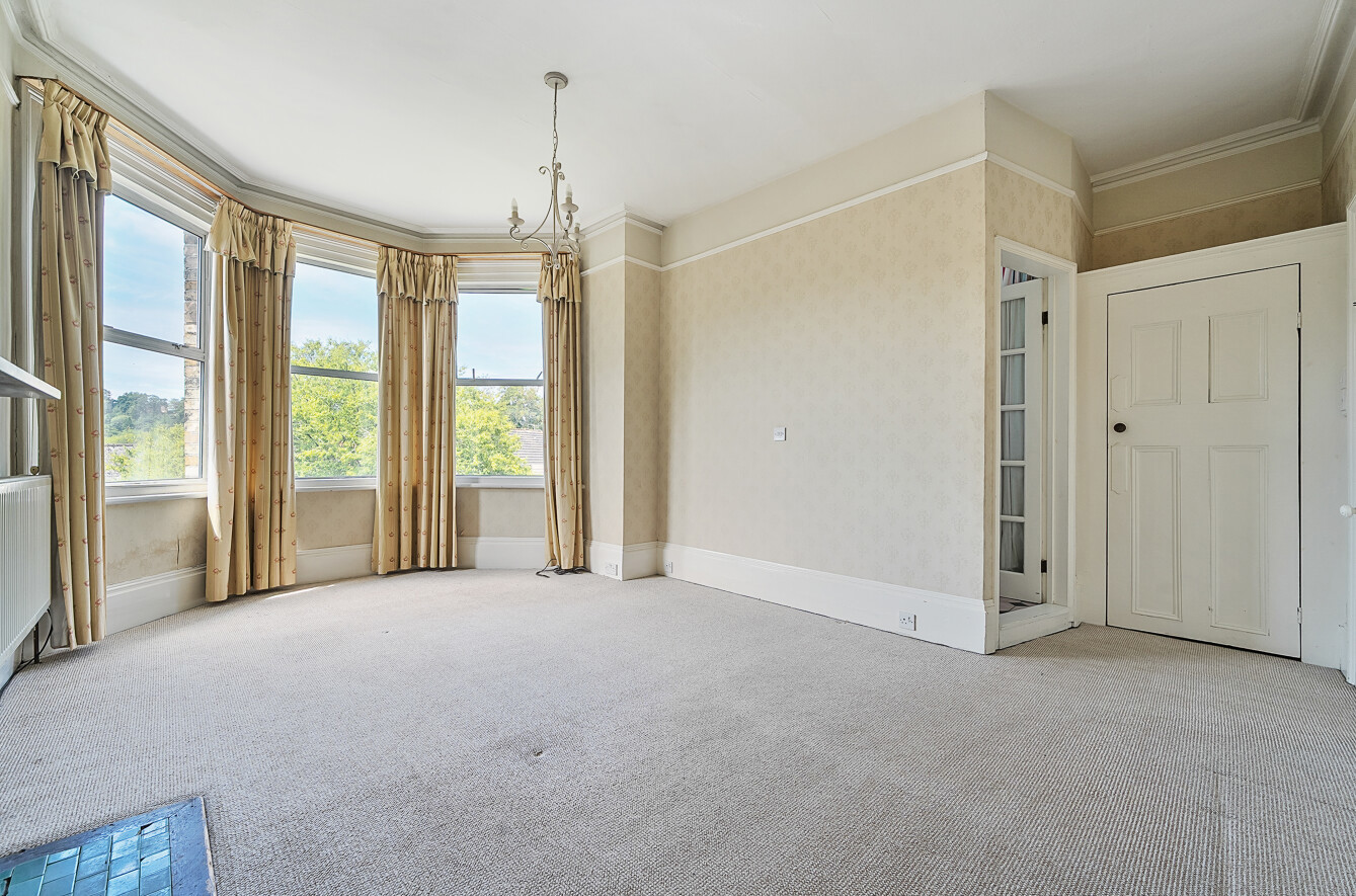 - Bay-fronted principal rooms with high ceilings and period details