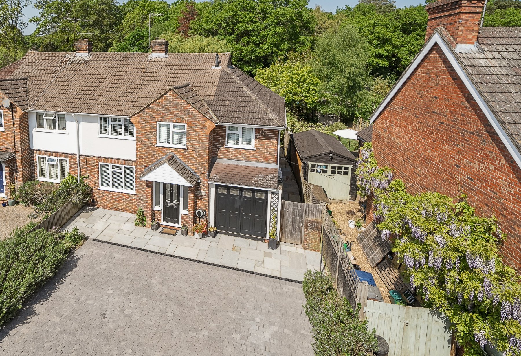 Behind the entrance there's a superb family home that's both spacious and charming. Opening onto beautiful gardens and benefiting from its own private driveway and garage, a well presented interior includes two hugely versatile reception rooms with focal point fireplaces. A modern kitchen open open plan to a breakfast room, the main bedroom has an en suite shower room and three further bedrooms share a family bathroom. An early viewing is strongly recommended to avoid missing out on this chain free Godalming home.