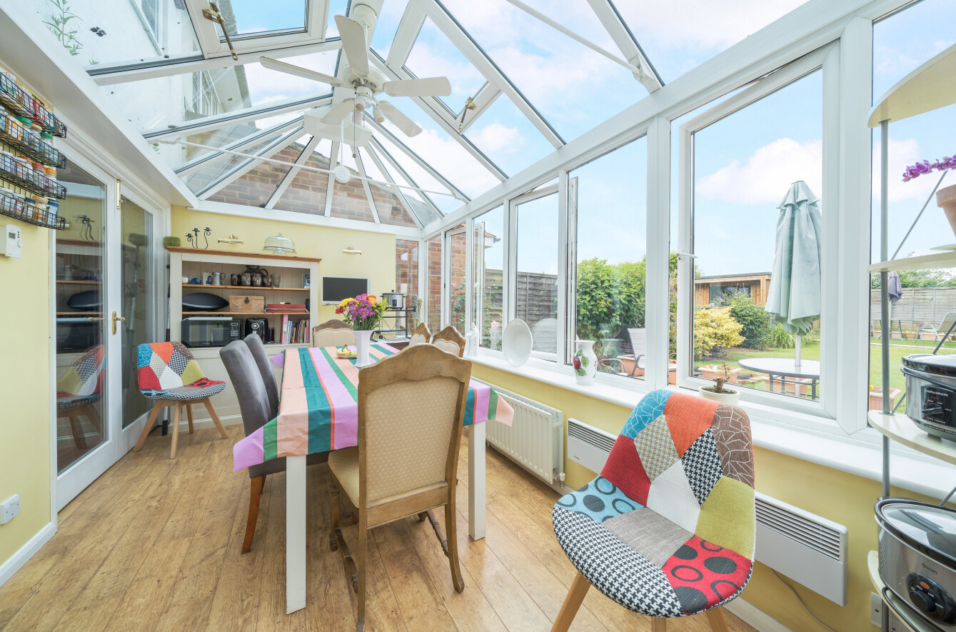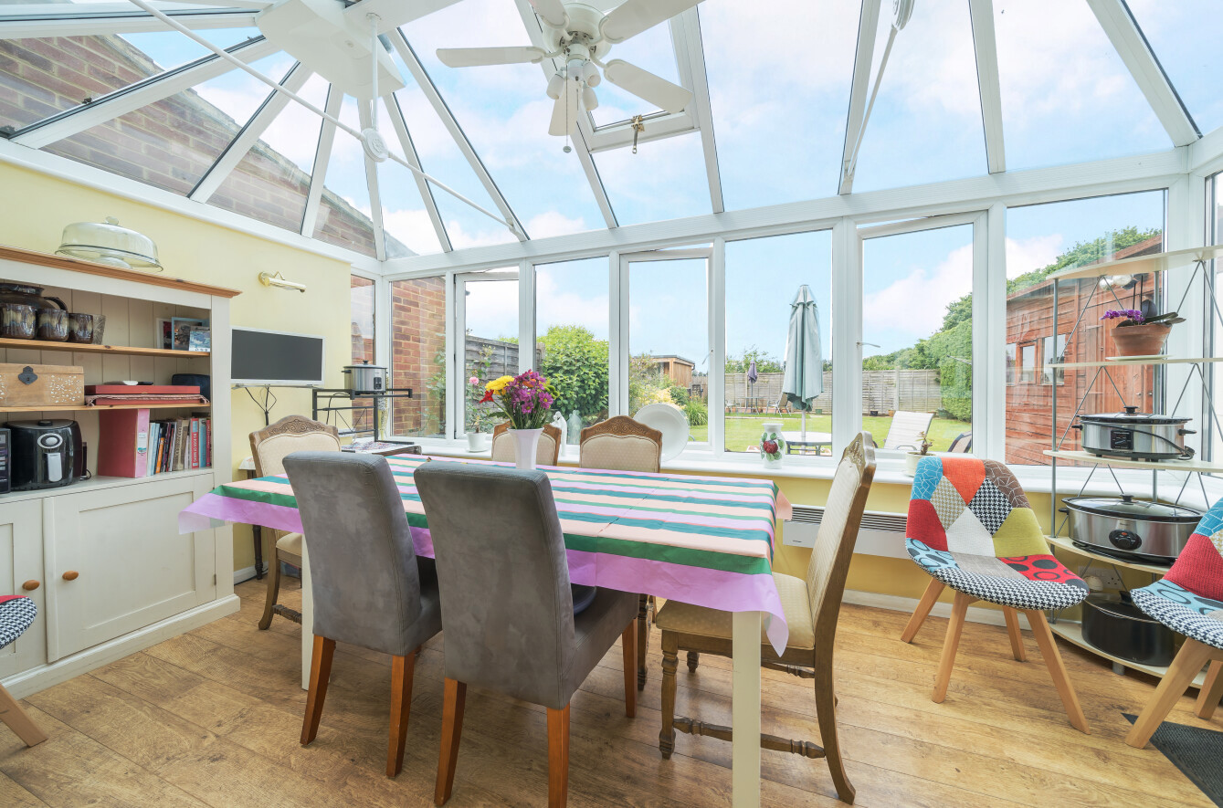 - Contemporary conservatory opening onto one of two patios