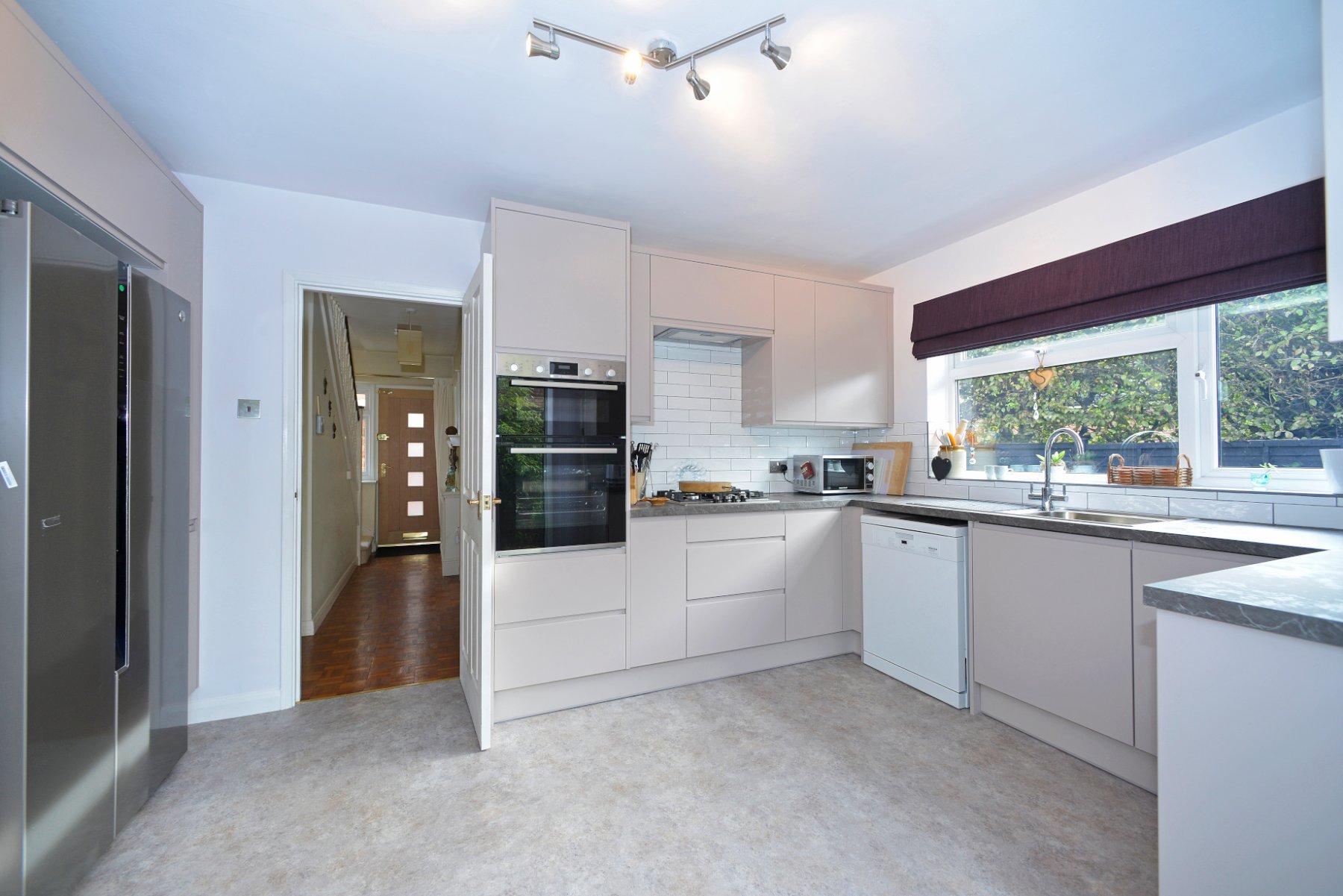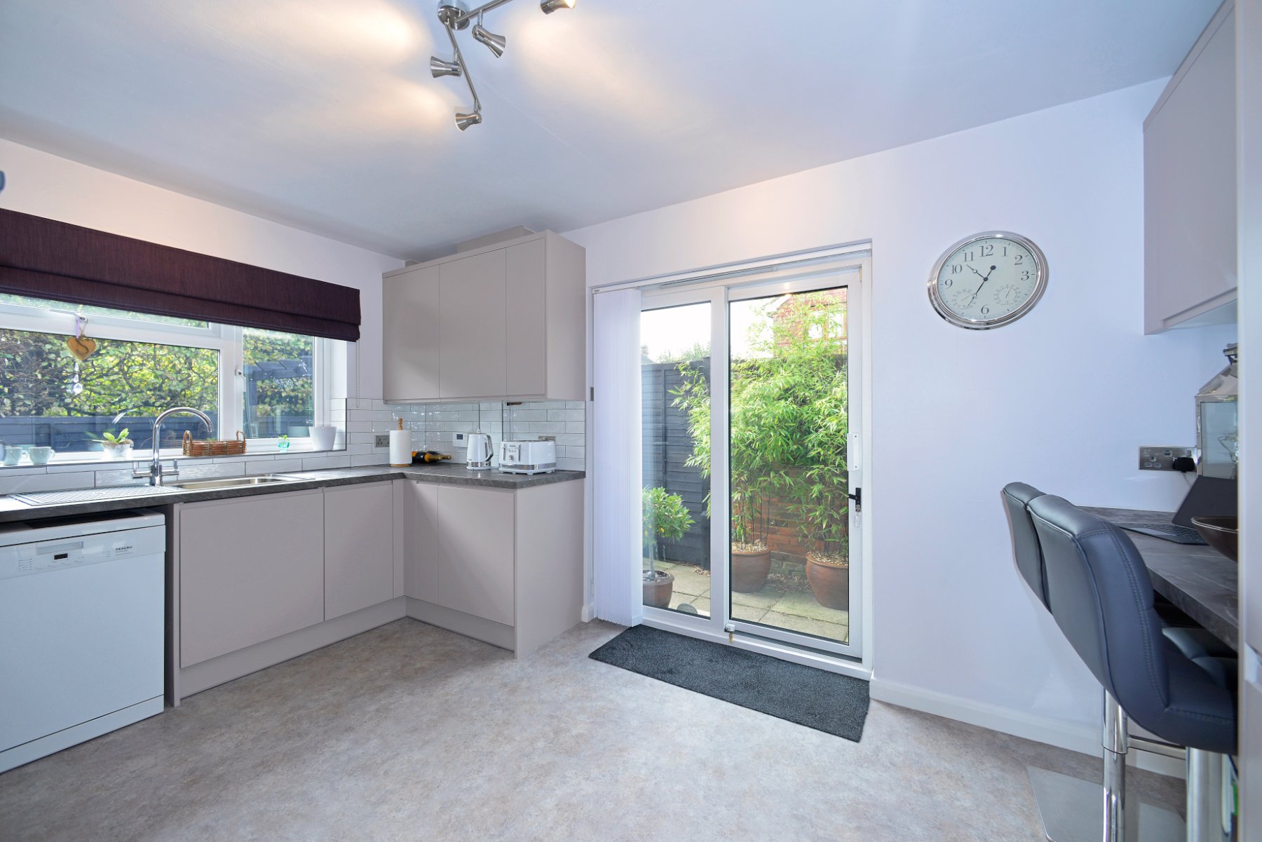 - Excellent large kitchen/breakfast room with handleless cabinets, integrated appliances and doors to the patio