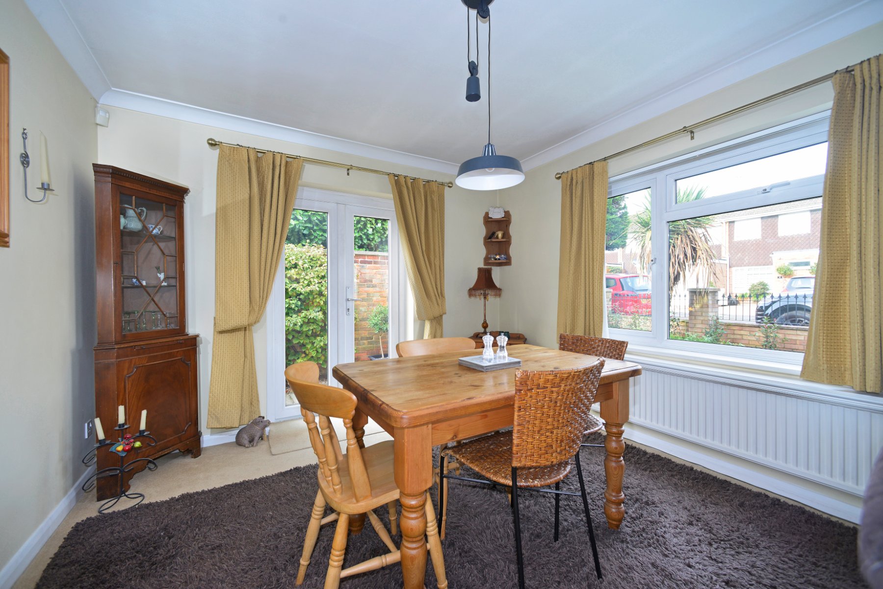 - Superb triple aspect sitting/dining room with French doors to the side patio