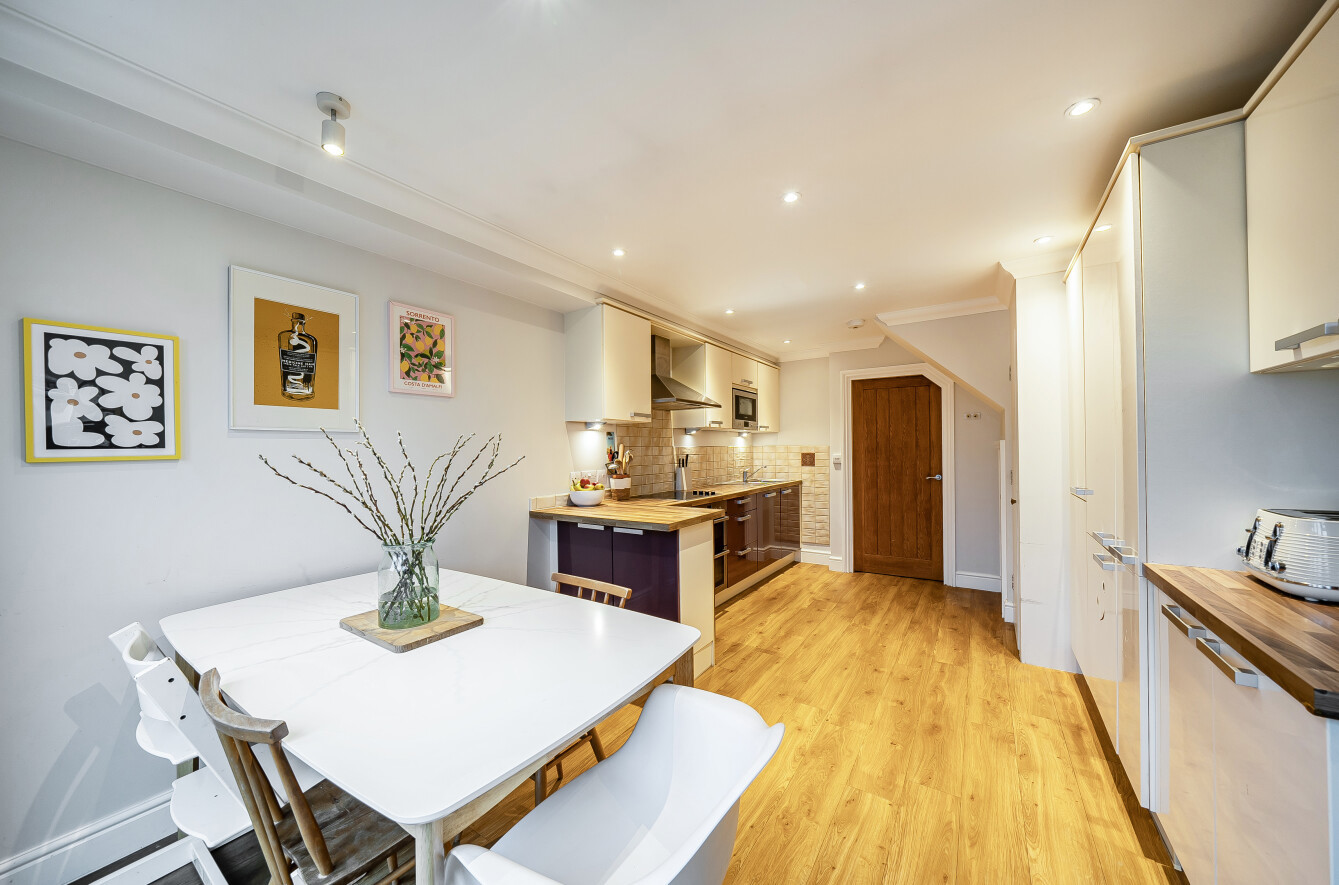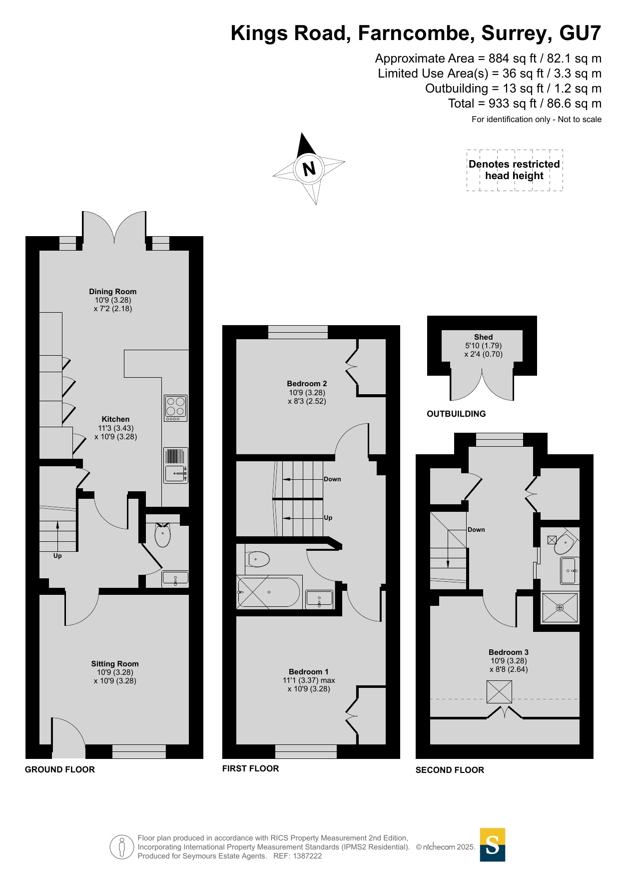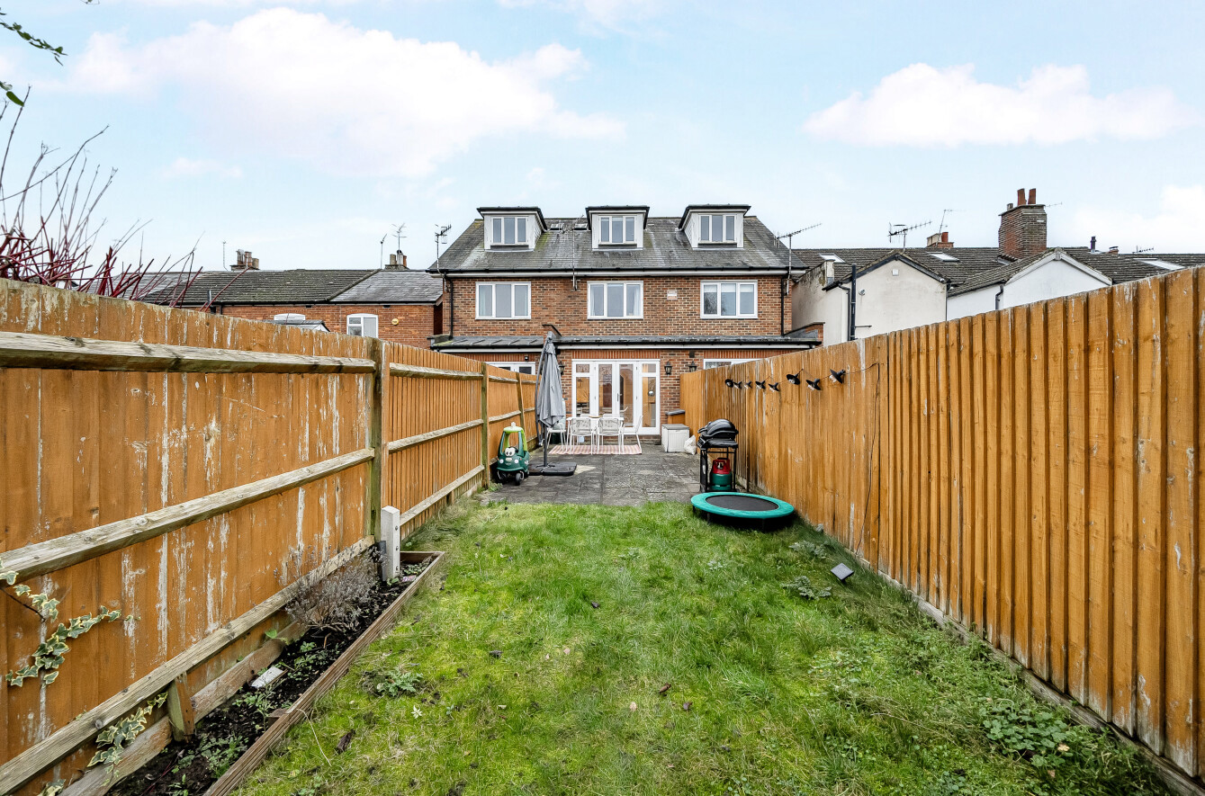 Set along the ever-popular Kings Road in Farncombe, this appealing family home offers a practical and well-considered layout that suits modern lifestyles while retaining a welcoming, homely feel throughout. Arranged over three floors, the accommodation is bright, well proportioned and presented in a neutral style that allows a purchaser to move straight in.The ground floor is centred around a comfortable sitting room to the front of the house, a warm and inviting space with good natural light and ample room for everyday living. To the rear, the kitchen opens naturally through to a dedicated dining area, creating an excellent space for family life and entertaining alike. The kitchen is well arranged with a good range of fitted units and work surfaces, while the dining area enjoys direct access to the garden, enhancing the sense of flow between inside and out. A useful ground floor cloakroom completes this level.On the first floor, the sense of balance continues with two well-proportioned bedrooms, including a generous principal bedroom with fitted storage. These rooms are served by a modern family bathroom, fitted with a white suite incorporating a bath with shower over and contemporary finishes.The second floor offers a flexible additional bedroom, served by a shower room, and is ideal for use as a guest bedroom, teenager's room or home office. Set apart from the main accommodation, it provides a useful degree of privacy and versatility.Throughout the house, the rooms enjoy good natural light and a cohesive decorative palette, reinforcing the practical yet comfortable nature of the accommodation.To the rear, the property enjoys a generous enclosed garden, laid mainly to lawn and bordered by fencing, creating a safe and private space for children and pets. A paved seating area sits directly behind the house, ideal for outdoor dining and summer entertaining, while the remainder of the garden offers scope for planting or further landscaping if desired.A detached outbuilding provides useful additional storage or potential workspace, adding further practicality to the property.