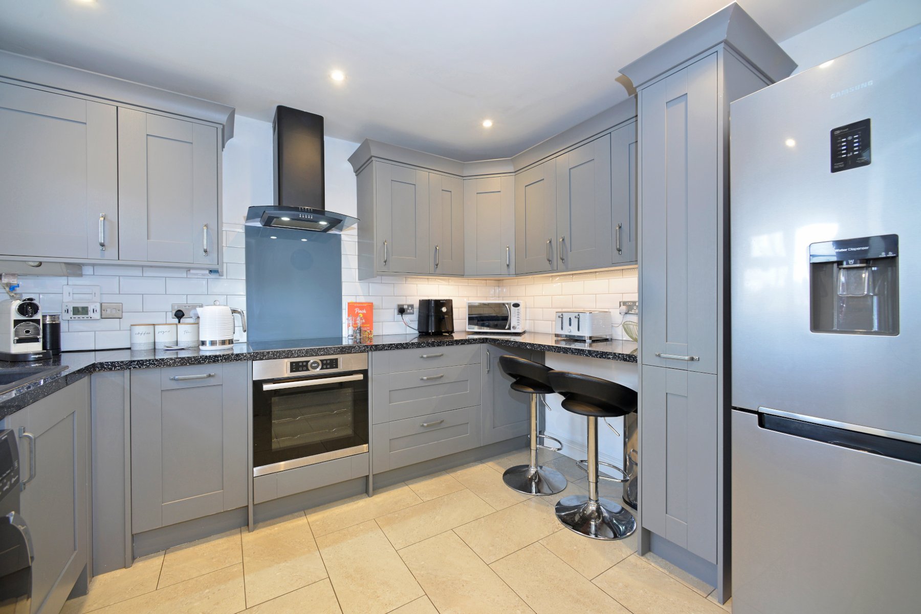 - Superb Shaker style kitchen/breakfast room with integrated appliances and breakfast bar