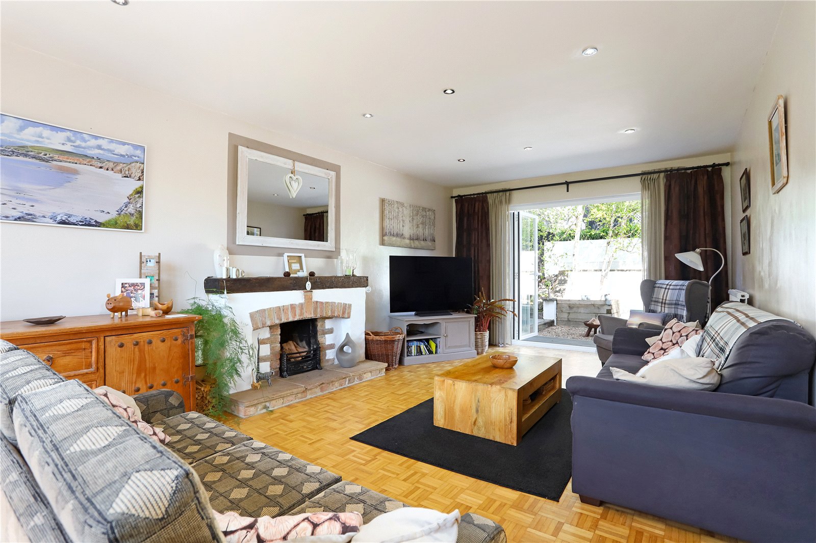 Sitting Room Double aspect, parquet flooring, open fireplace with mantle over, bi-fold doors lead to outside.