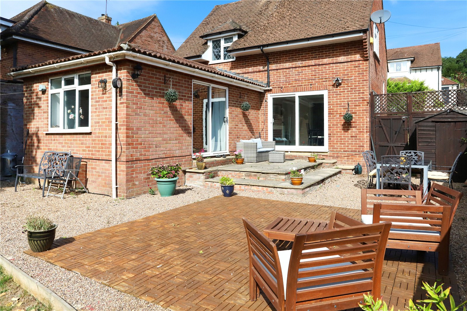 Outside The rear garden is a true highlight a private, enclosed haven mainly laid to lawn with a patio terrace that invites summer barbecues, al fresco dining, and childrens play. To the front, a driveway provides convenient off-road parking.