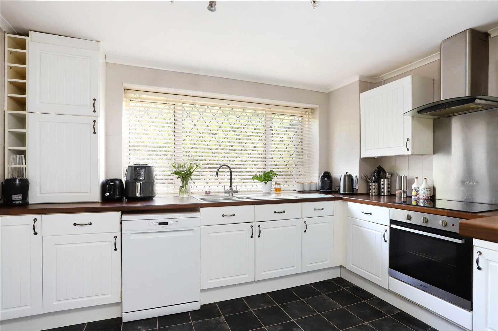 At the front, the kitchen combines practicality with charm, leading seamlessly into a dedicated utility room, keeping household essentials tucked neatly away.