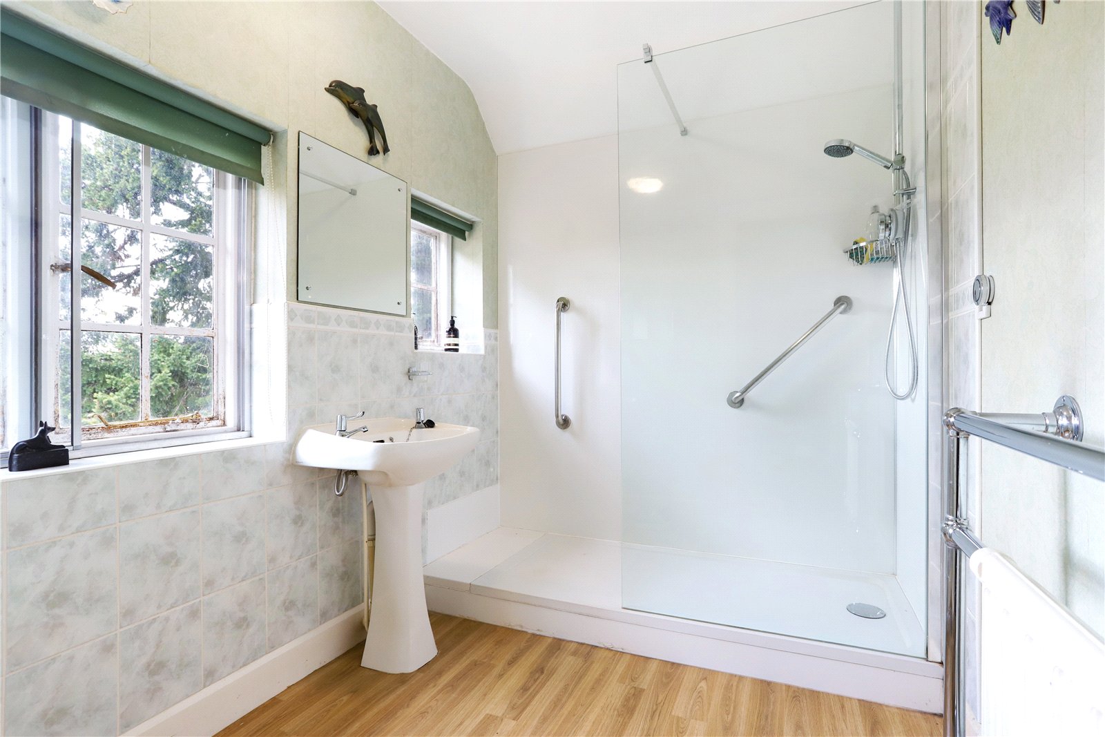 Shower Room Front aspect, large walk-in shower, pedestal wash hand basin, heated towel rail.