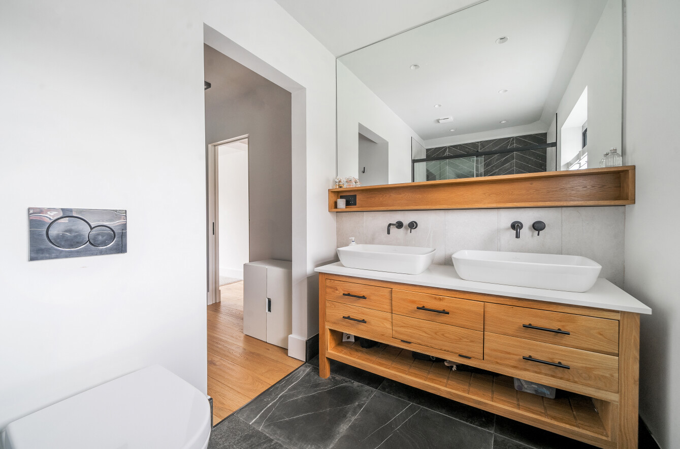 There is a guest double bedroom with en suite shower room and built in wardrobe, and then three further double bedrooms which share a spacious and modern family bath/shower room. All bath/shower rooms benefit from Hansgrohe taps, Villeroy and Boch sanitary ware and Porcelanosa tiles. Viewing is highly recommended to appreciate the space and versatility of the accommodation on offer.
