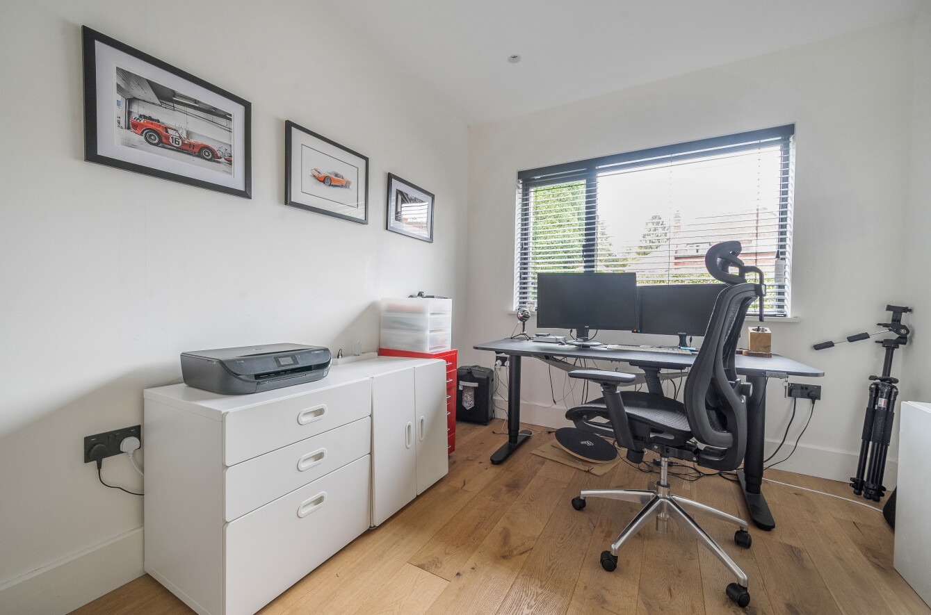 The house benefits from a plot in excess of 1/3rd of an acre, with the gardens predominantly falling to the rear of the house. Extending across the rear of the property is an extensive paved terrace with steps down to a substantial lawn. The garden is south facing, enjoying sun all day long, and thanks to mature hedging and planting is incredibly private. There is more than enough space for a family to play, whilst offering scope to be further landscaped if desired. Home offices are increasingly popular these days and this could easily be accommodated if desired without compromising on garden space.