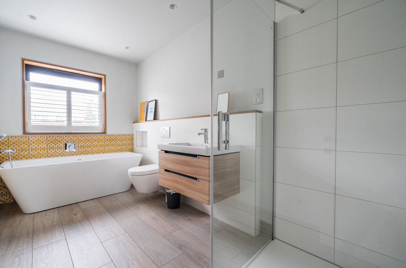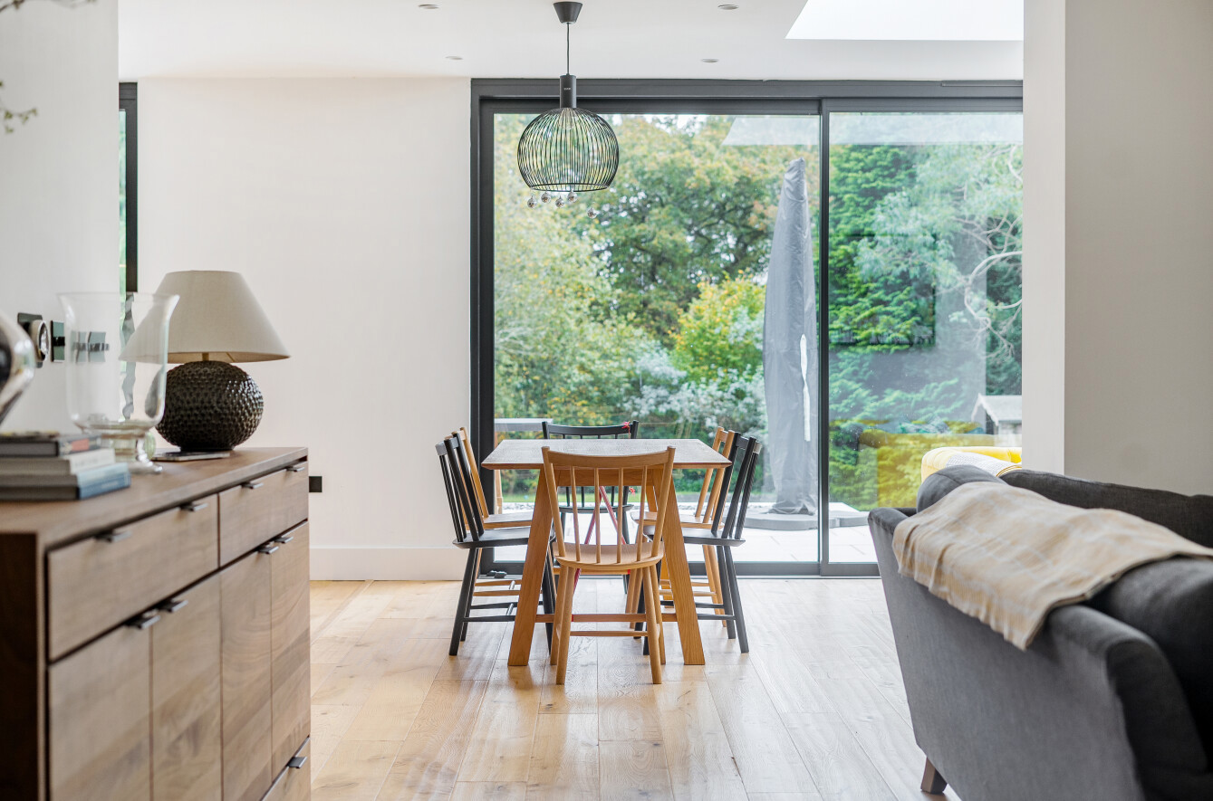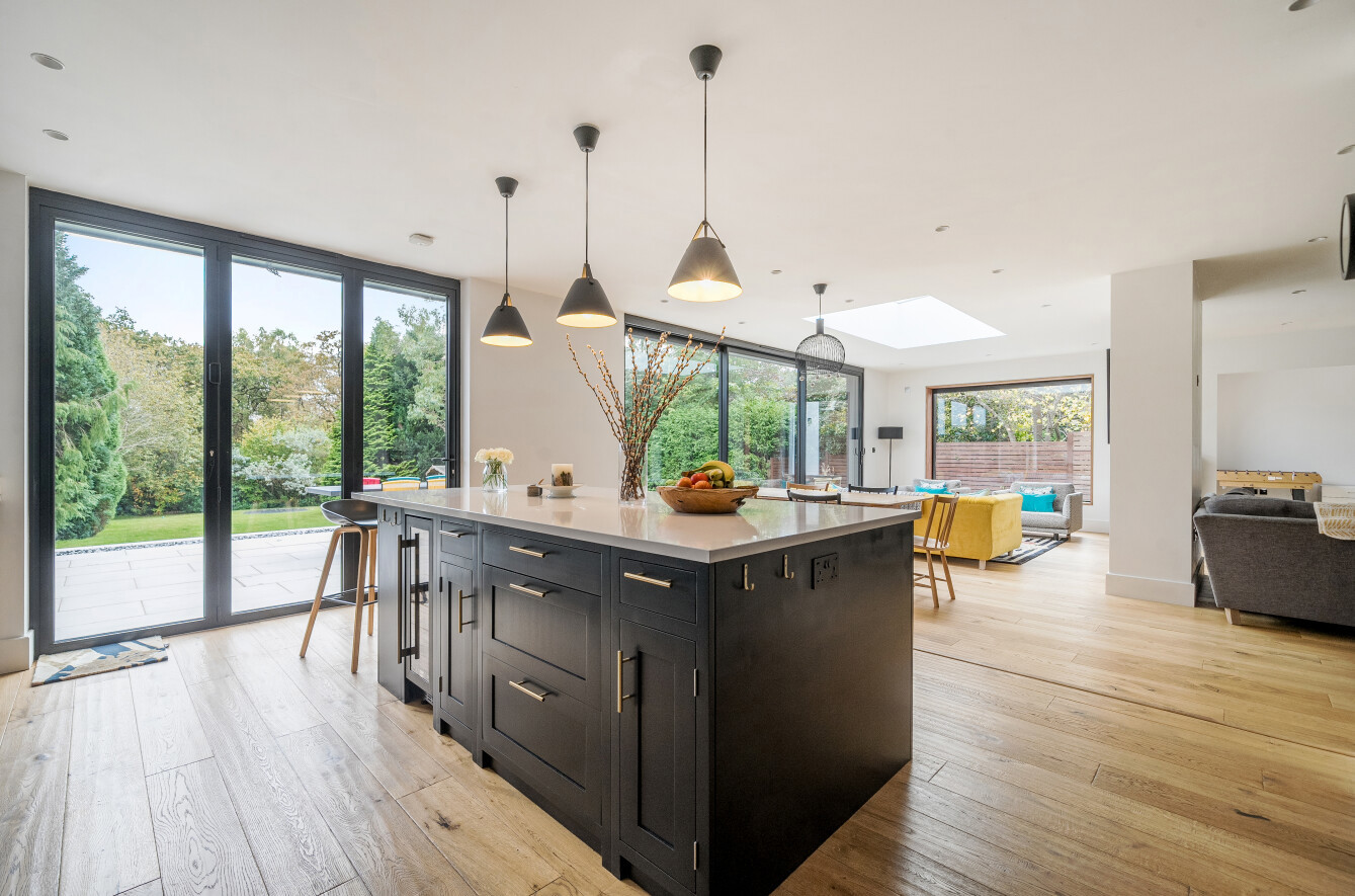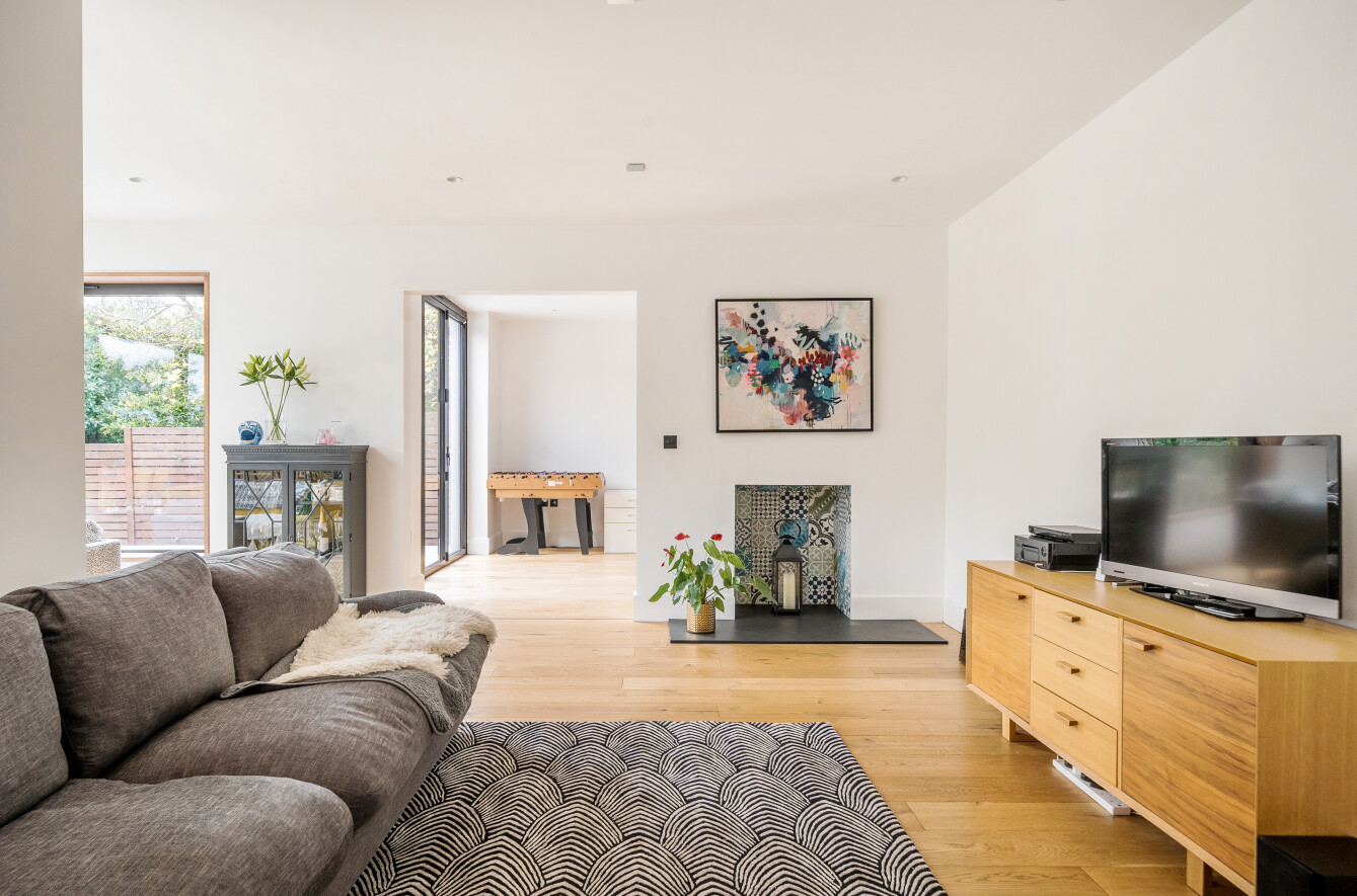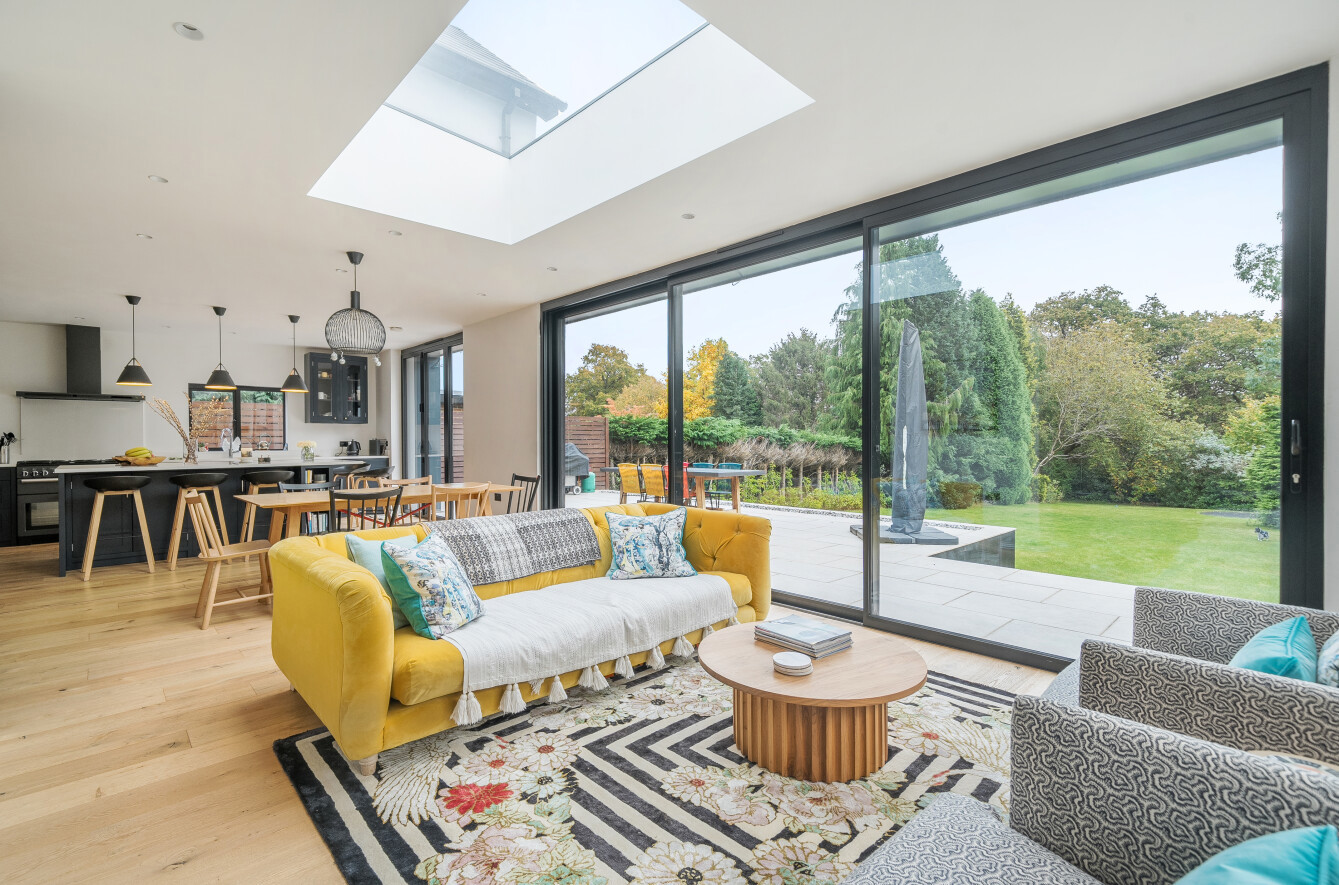 The final room on the ground floor is a double aspect family room with bi-folding doors out onto a deep paved patio which extends across the whole of the rear of the house to the kitchen. A great space for al fresco dining and entertaining.