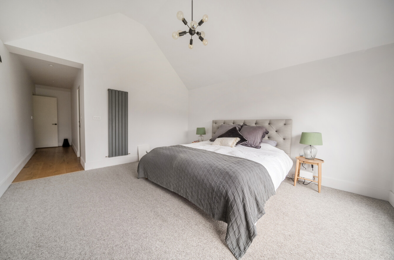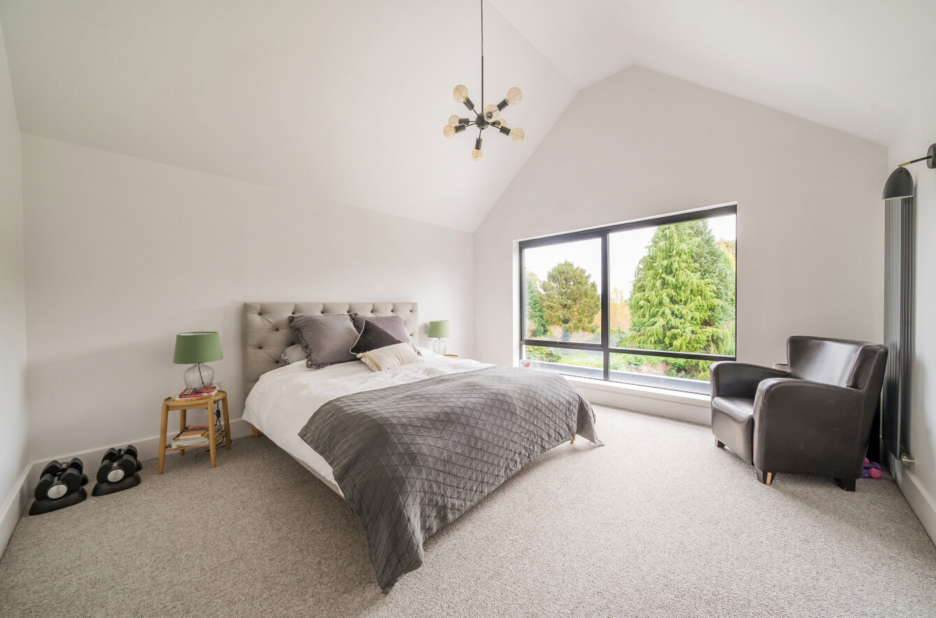 Heading to the first floor there is a superb master bedroom with dressing room and en suite shower room featuring twin sinks and a walk in shower. A vaulted ceiling and large south facing picture window allow both views over the rear garden to be enjoyed and natural light to fill the room.