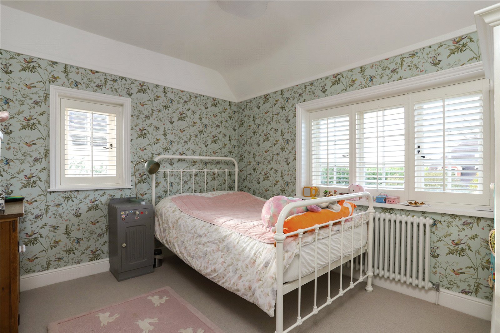 Bedroom 1 Front aspect, window shutters and wonderful views over Langham recreation ground and beyond, wall length range of fitted wardrobes.