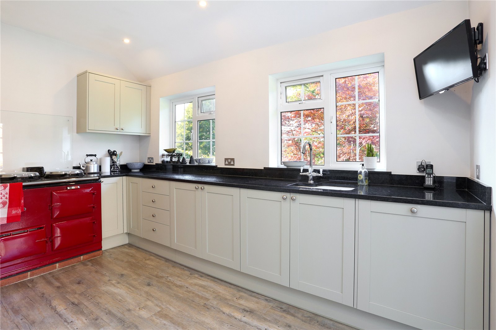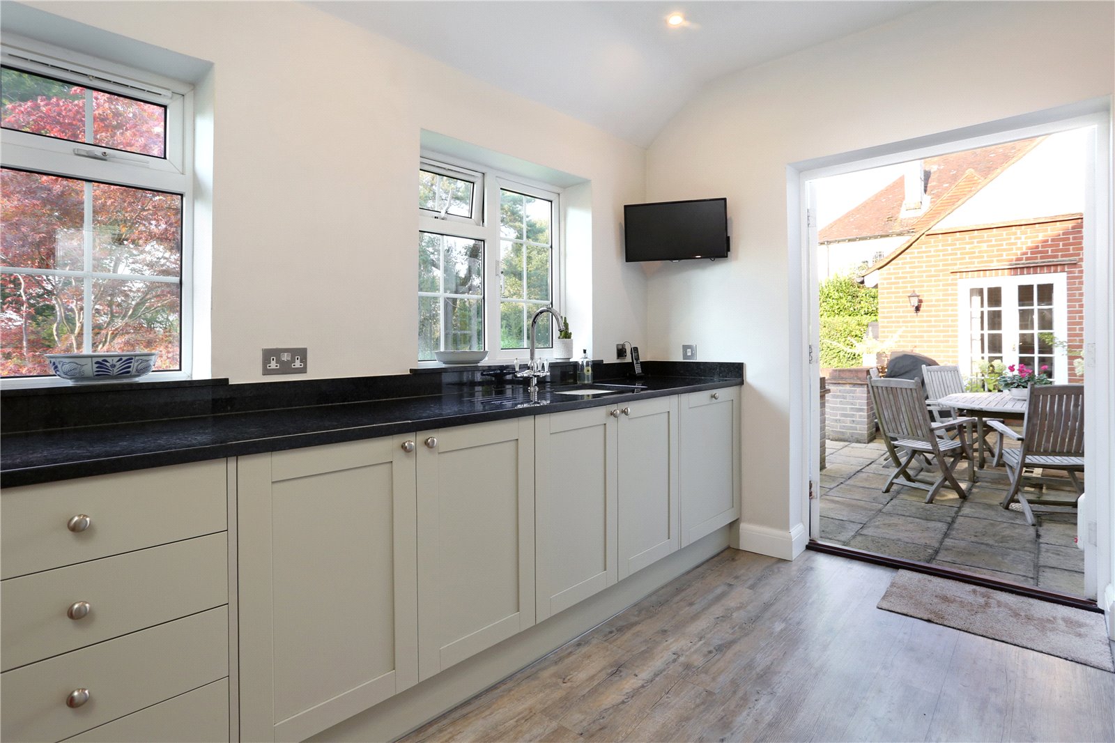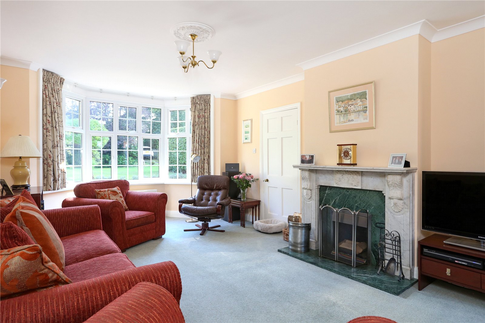 The sitting room is front aspect enjoying charming views of the front garden from the characterful bay window. Centred around the feature marble fireplace, the room is great for cosy evenings and family time. There is a further family room with doors onto the patio.