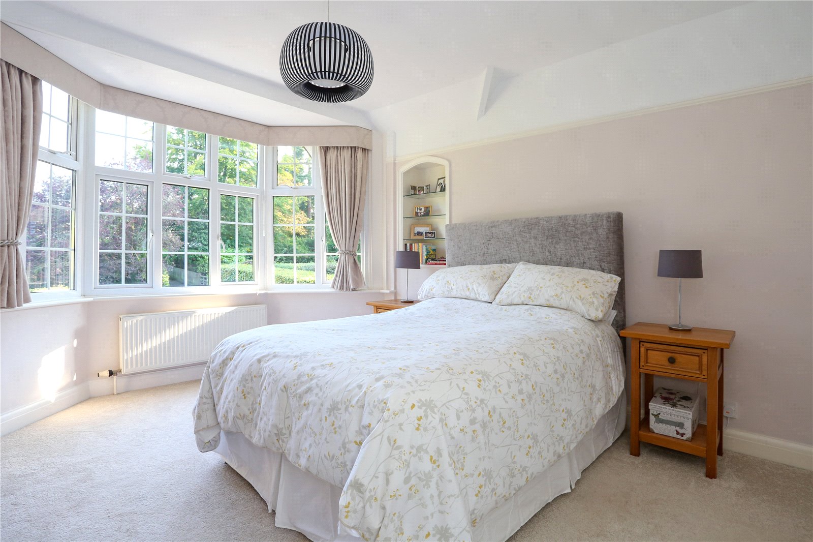 First Floor The first floor provides 5 bedrooms in total, plus a Study/Cot room, making this a well-proportioned family home. The principal bedroom is a great size with fitted wardrobes and space for free standing furniture. The ensuite accommodates both a fitted bath and shower. The second bedroom also has its own ensuite shower room. There are three further double bedrooms all benefitting from fitted wardrobes and storage and a further Study/Cot room.