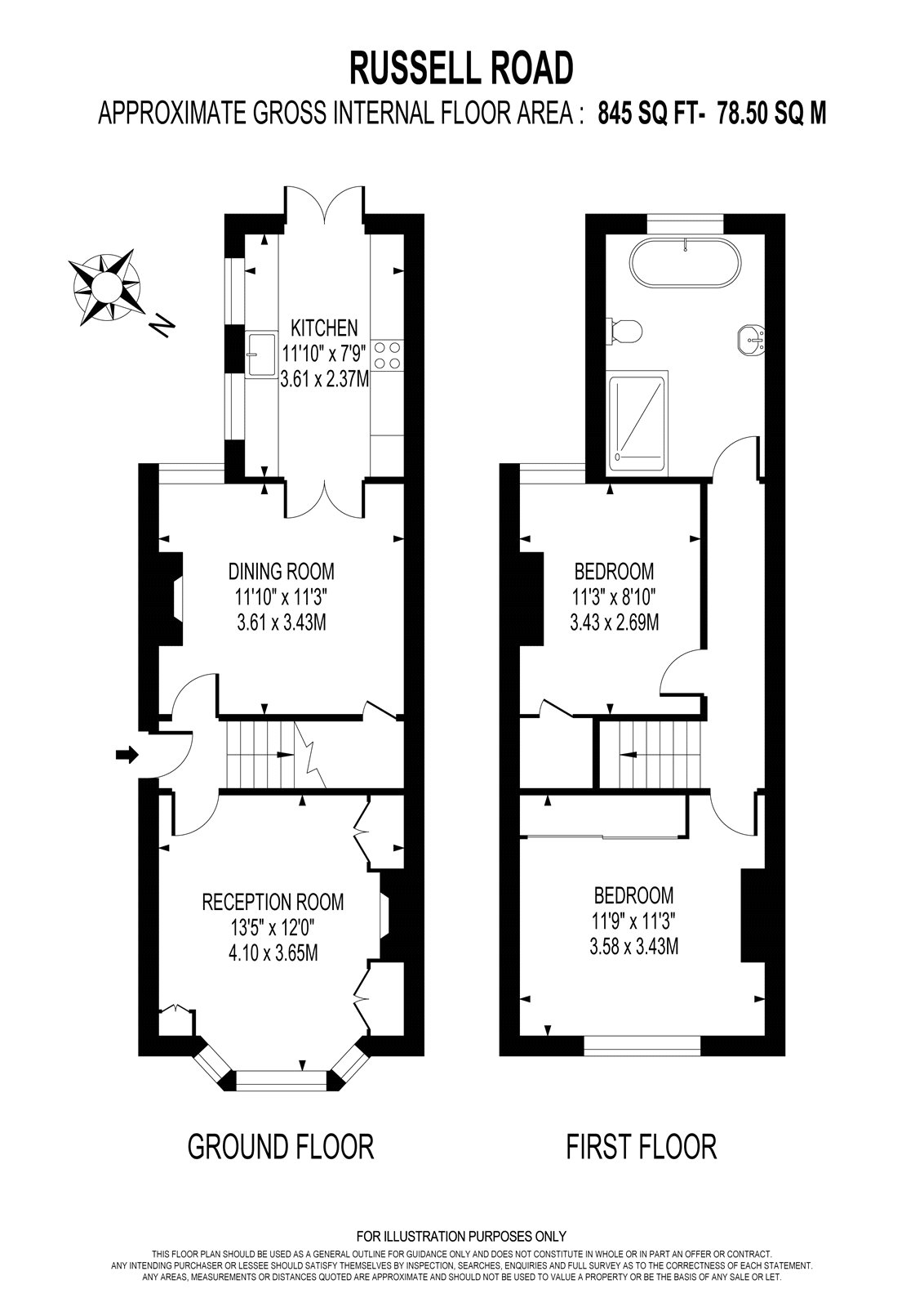 The first floor showcases two well-proportioned bedrooms including a master bedroom with a huge build-in wardrobe. The second bedroom also benefits from a storage cupboard. The Family bathroom offers a waterfall shower, separate standalone bath, toilet, and mirrored sink with storage.