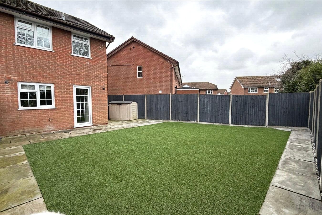 The property features a spacious and welcoming living room, complete with useful built-in under-stair storage. To the rear, the kitchen provides direct access to an impressive garden (larger than average for the road) which wraps around to the side of the property and benefits from convenient gated side access. Thoughtfully landscaped, the garden has been beautifully finished with a combination of patio and astroturf, creating a low-maintenance outdoor space that enjoys an abundance of natural light throughout the day.