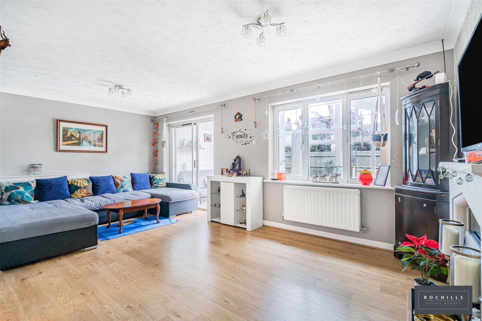 On the first floor, the principal bedroom benefits from a stylish refitted en suite shower room and fitted wardrobes. Two additional double bedrooms are served by a modern family bathroom.