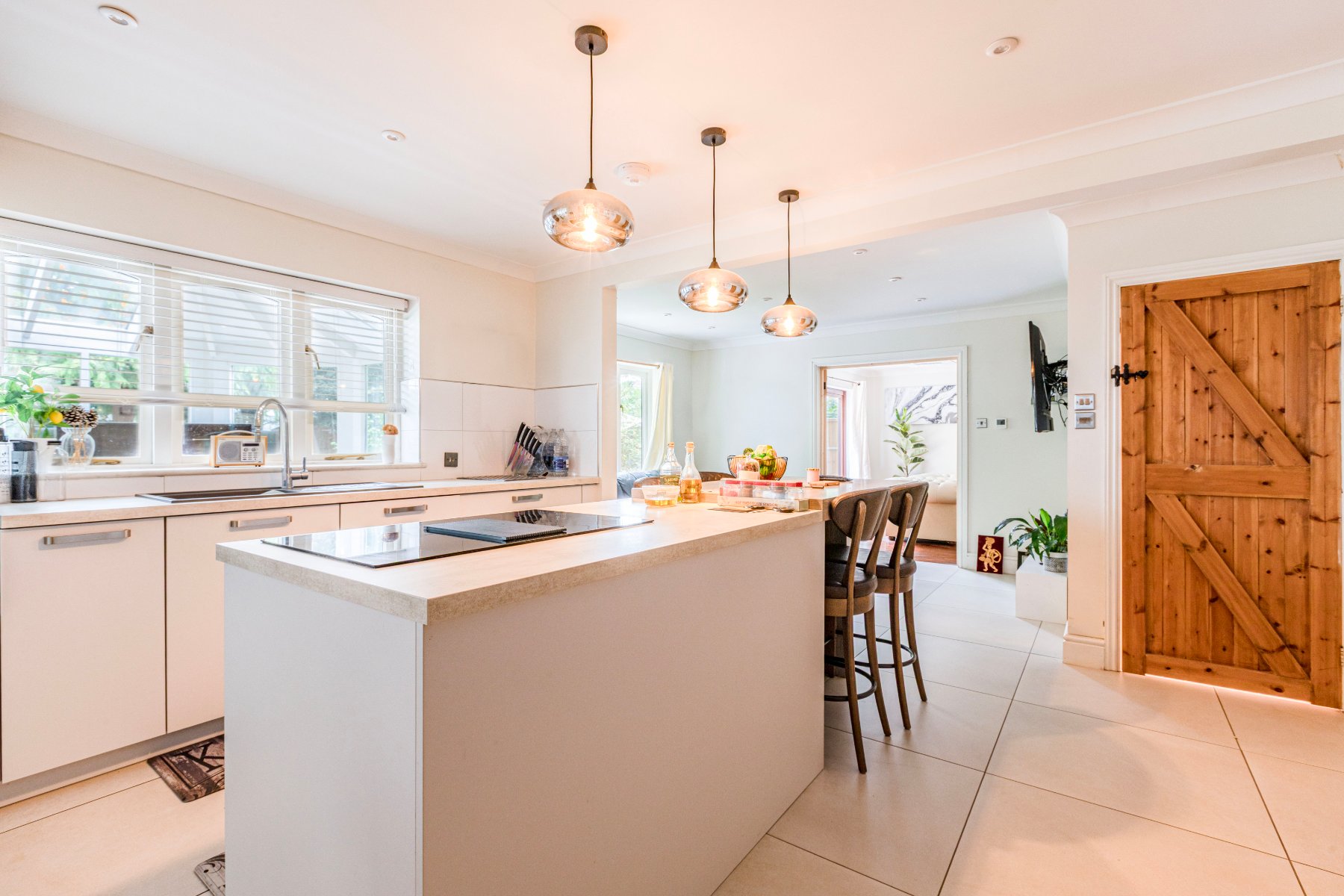 Set within a magnificent plot of 0.3 acres and tucked away in a desirable cul-de-sac within the highly sought-after Dartnell Park, this attractive 5 bedroom detached family home extends to approximately 2,852 sq ft and offers generous, versatile living throughout. The ground floor features 4 excellent reception rooms, a modern kitchen/breakfast room leading into a magnificent conservatory, a separate utility room, and a cloakroom. Upstairs, the bright and airy principal bedroom benefits from a walk-in wardrobe and an en suite bathroom. There are 4 further bedrooms and a large family bathroom. Outside, a gavel driveway provides extensive parking and leads to a double garage with lighting and power. Gated side access opens to a secluded rear garden, featuring an impressive patio area ideal for alfresco dining. A charming footbridge leads to an additional garden at the rear a tranquil, private space with the rare advantage of fishing rights on the Wey Navigation Canal.