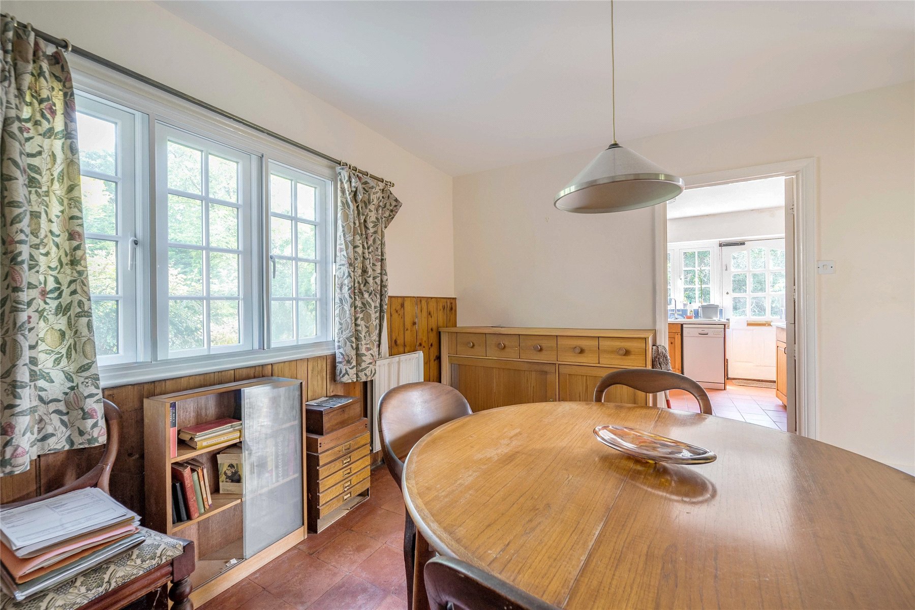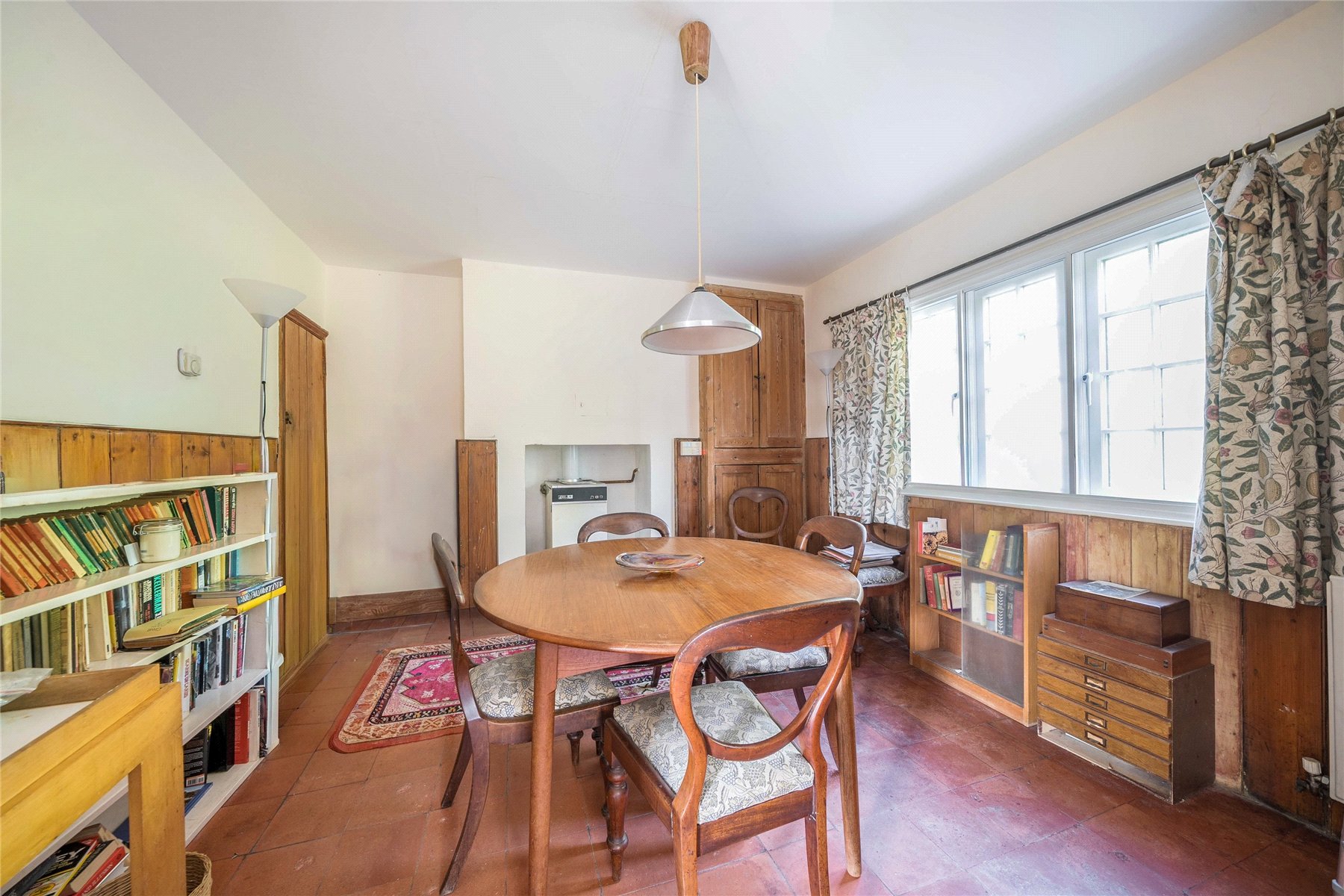 The front door of this property opens into an entrance hall providing access to the ground floor WC and both reception rooms. The sitting room is cosy and light with a casement window that overlooks the front of the property and an open fireplace. The dining room features an open fireplace, where the floor standing boiler is situated and a large picture window offering views over the rear garden. A door leads through to the kitchen which is a good-size and would benefit from being updated. An external door provides side access to the property.