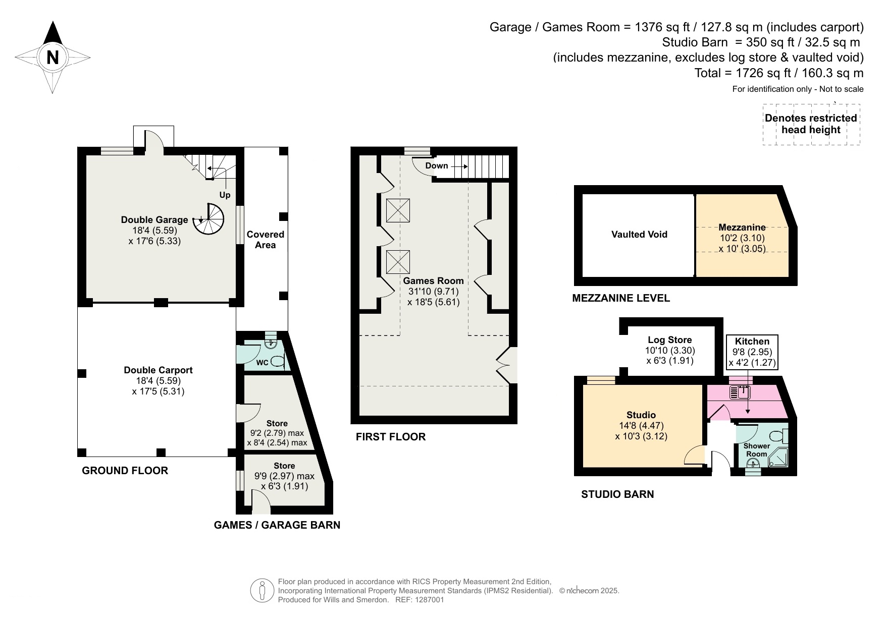 Currently arranged as a vaulted studio with kitchenette and shower room, together with a separate barn offering under-croft parking, double garage, games room, and wine cellar.