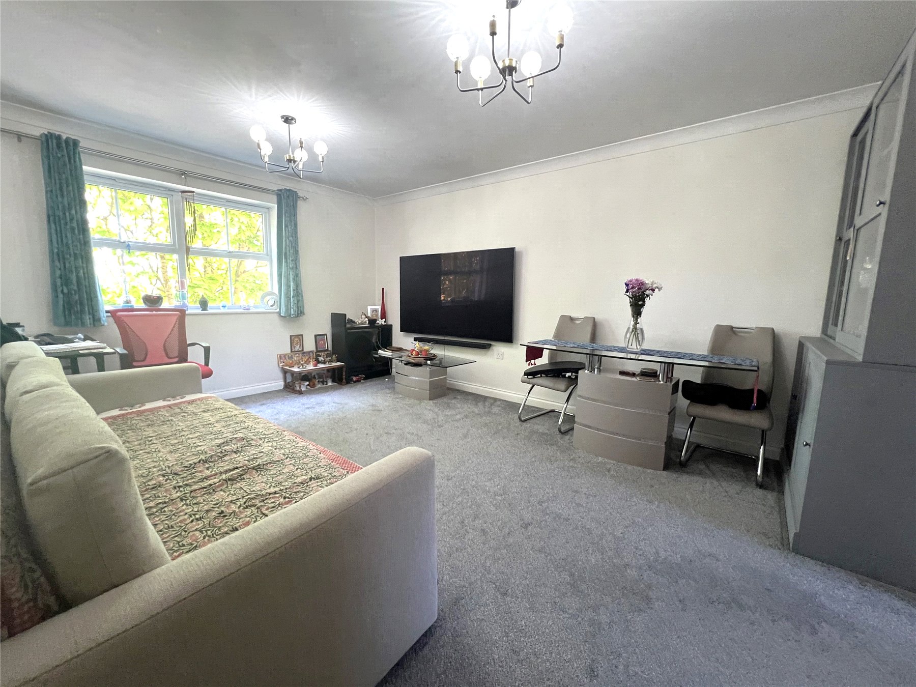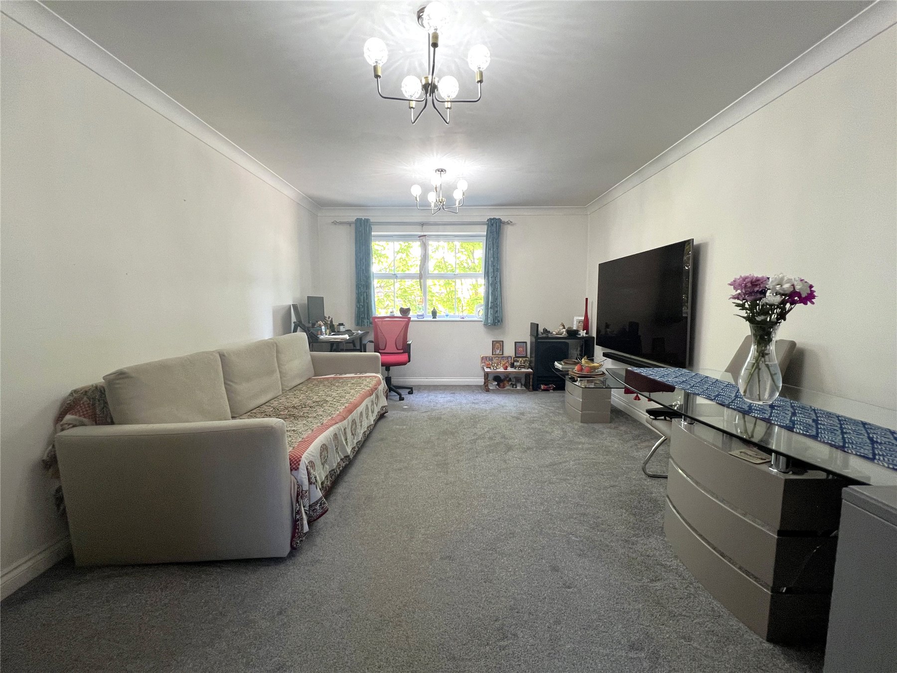 A well presented first floor executive apartment, one of the largest in this popular development. The property features two double bedrooms, en suite to master bedroom, guest bathroom, spacious lounge, modern separate fitted kitchen, electric heating and covered allocated parking. Ideally located within close proximity of local shops and a short drive of M3 motorway links and Sunbury train station.