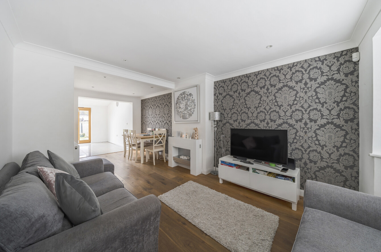 This three bedroom semi detached family home is presented in excellent condition throughout and benefits from an extended modern fitted kitchen/breakfast room with central island and bi-fold doors onto the rear garden. Other features include a through living/dining room, downstairs cloakroom, large store cupboard in hallway, utility room, modern first floor bathroom, private rear garden with large decked area and off street parking to the front. Ideally located in this quiet residential road within walking distance of local shops, schools, bus routes and mainline station.
