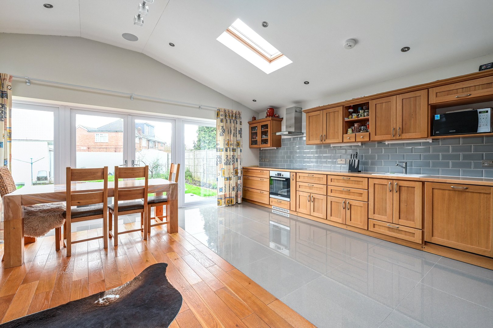 This extended semi detached family home is presented in good order throughout and located within walking distance of local schools, bus routes, locals shops and mainline station. Features include a large welcoming hallway, separate well appointed living room, two bath/shower rooms on the ground floor, three first floor bedrooms, large open plan living/kitchen/family room with a vaulted ceiling, 50' rear garden and off street parking. Viewing highly recommended.