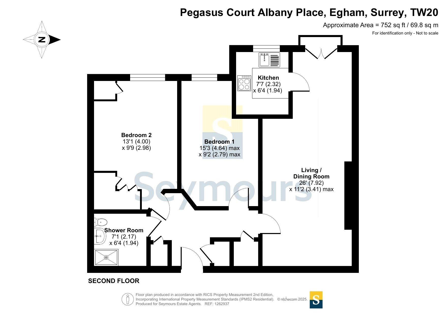 Pegasus Court is a lovely retirement complex for the Over 60's conveniently located within walking distance of Egham Town Centre, mainline station and Waitrose supermarket. The development offers many services such as a full time Manager (Mon - Fri) between 9am-5pm, communal living room, craft room, laundry room, security entryphone system, lift in block, additional alarm cord in apartment, landscaped communal gardens and ample gated parking. This second floor apartment is offered for sale with immediate vacant possession and comprises a modern kitchen and shower room, two double bedrooms, 26' living room and Juliette balcony.