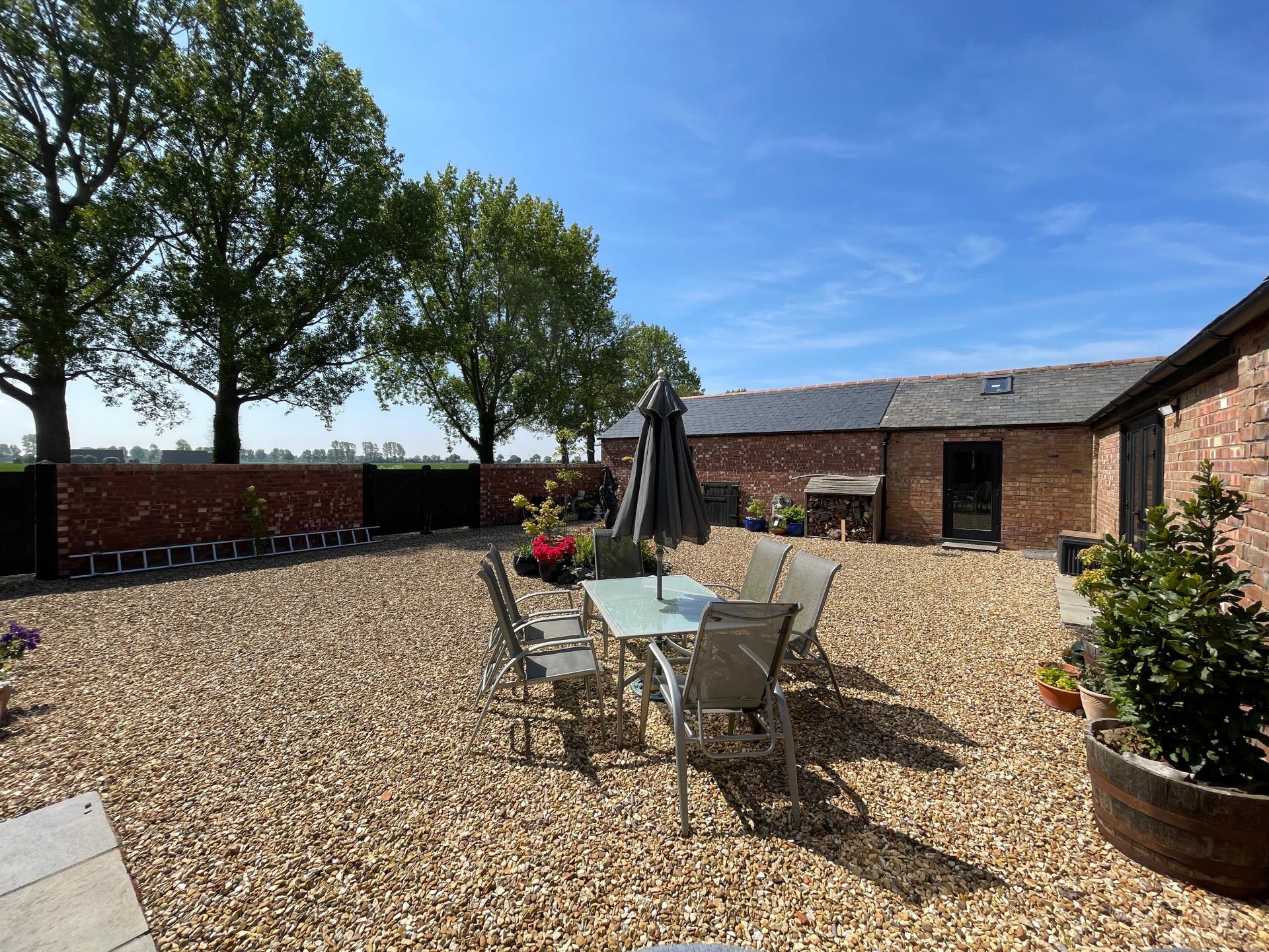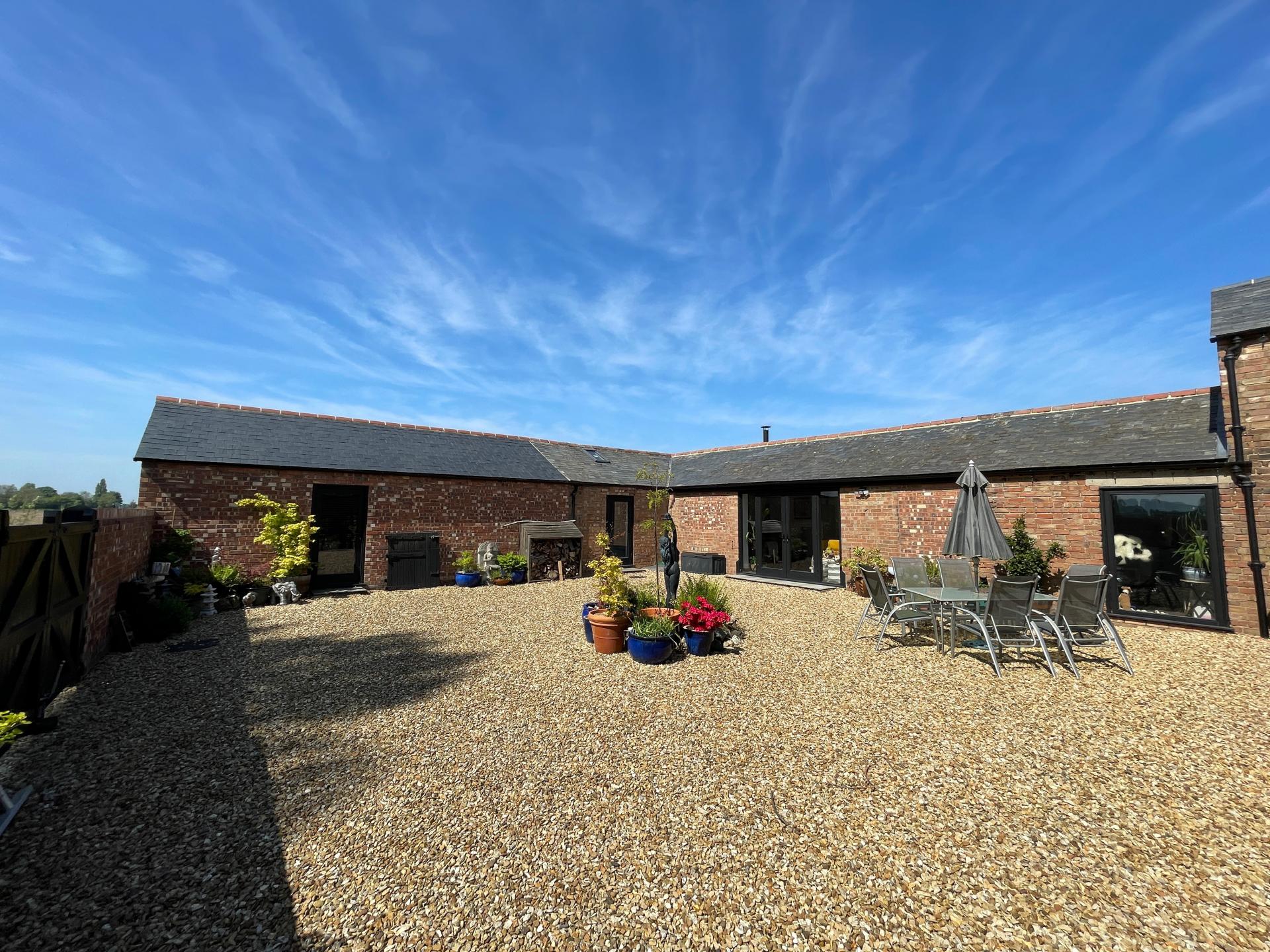 EXTERIOR Extensive gravelled driveway providing multiple off-road parking for vehicles, fenced boundaries and fields views to the front. Double and single gates into courtyard area. Five bar gate and further pedestrian gate leading into the rear garden.