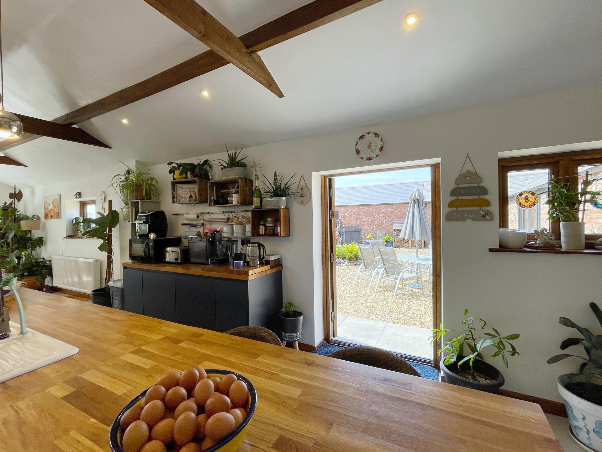 Superbly presented, character barn converted which has been converted and renovated to a very high standard by the current owners. There is ample off-road parking for vehicles, beautifully presented courtyard, enclosed rear garden, views over open fields to the front. Open plan kitchen/diner, utility, cloakroom, study, large lounge, 2 double bedrooms with en-suites to the ground floor; bedroom 3 with en-suite to the first floor.
