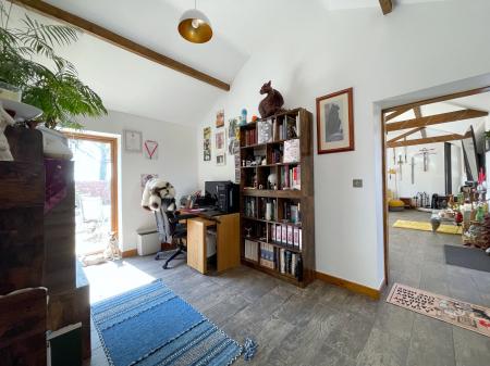 STUDY 9' 11" x 14' 0" (3.04m x 4.28m) Wooden double glazed window to the front elevation, vaulted ceiling with beams and centre light point, double radiator, ceramic flooring, BT point.