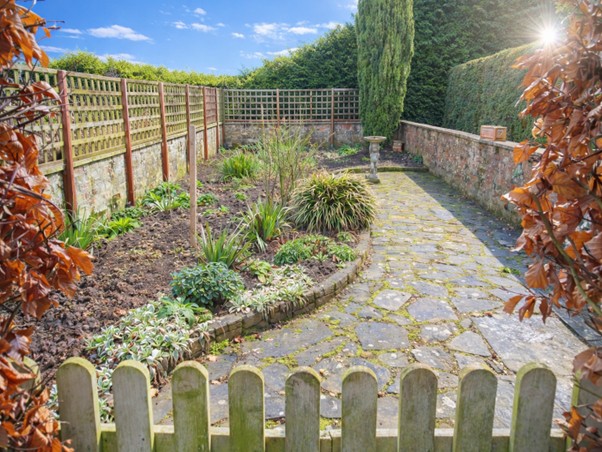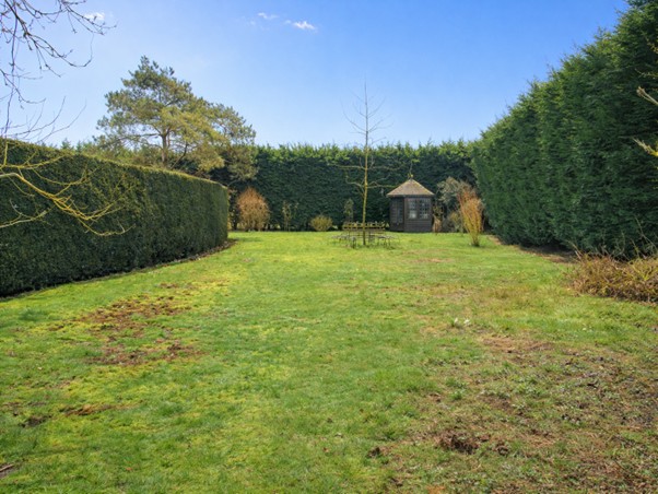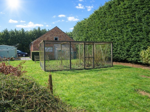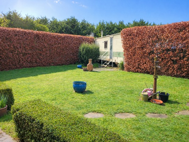 The property sits in a secluded position with mature conifer screening to the garden boundaries with main garden areas set predominantly across the front and both sides. Gated gravel driveway to the rear of the property providing off road parking, plus further off road parking to the front of the double garage. Lawned orchard garden set with mature trees and fruit trees (including 3 apple, pear, hazelnut, plum and damson), to the rear of the property and extending round the side with summer house at the far corner having paved surround. Hedging with openings to further formal lawned garden and patio area to the side of the property. To the front of the property is a pathway to the entrance door plus formal parterre garden with hedge screening, low box hedging, inset pathways, formal flower beds and centre water feature. To the other side of the property is a further formal lawned area with patio area to the entrance of the static caravan and stepping stone pathway leading to both the formal 'walled' garden with low brick wall border and inset flower bed areas plus to the lawned area used as a vegetable garden area with lean to greenhouse (at the rear of the double garage), netted bedding area, wooden garden shed plus brick edged compost sections.