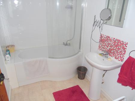 DOWNSTAIRS BATHROOM: Upvc double glazed window to the rear. Fitted modern white suite comprising bath with shower mixer tap, wc plus hand basin. Heated towel rail. Tiled splash backs.