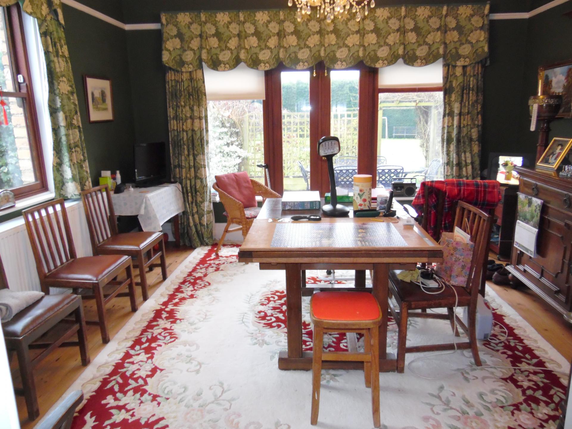 Dual aspect with window to the front plus double door with matching side windows to the side. Picture rail. Feature coving and ceiling rose to ceiling. Exposed wooden floor. Radiator.
