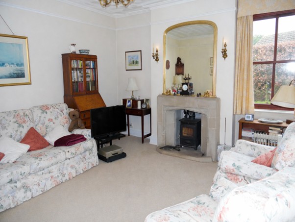 Dual aspect with windows to the front and side. Picture rail. Feature coving and ceiling rose to ceiling. Feature stone fireplace and hearth with inset log burner. Radiator.